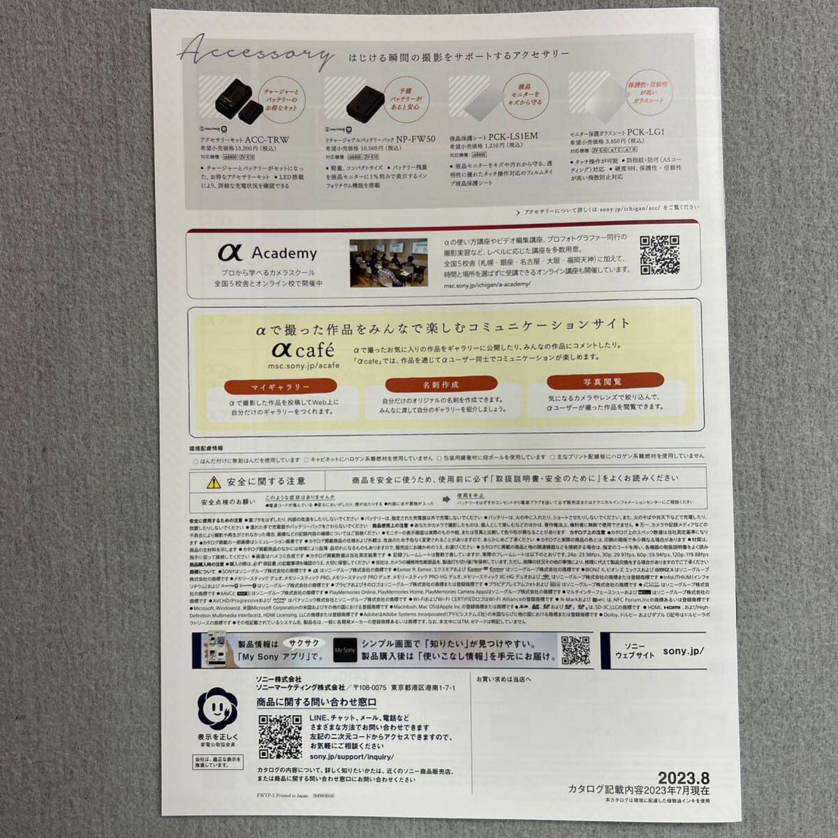 SONY(ソニー)デジタル一眼レフカメラ総合カタログとアクセサリー総合カタログの2冊セットです。