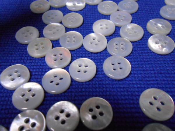 少し透明感のある白い薄手のタイプのボタンに仕上げています。
