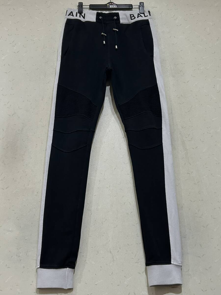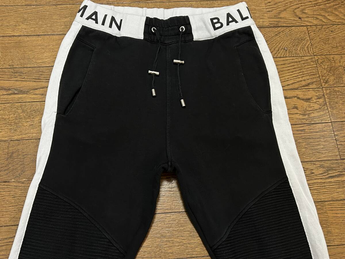 ※BALMAIN バルマン 57861268 蛇腹バイカーロゴスウェットジョグジョガーパンツ ブルーベル イタリア製 ブラック×ホワイト S BJBD.H