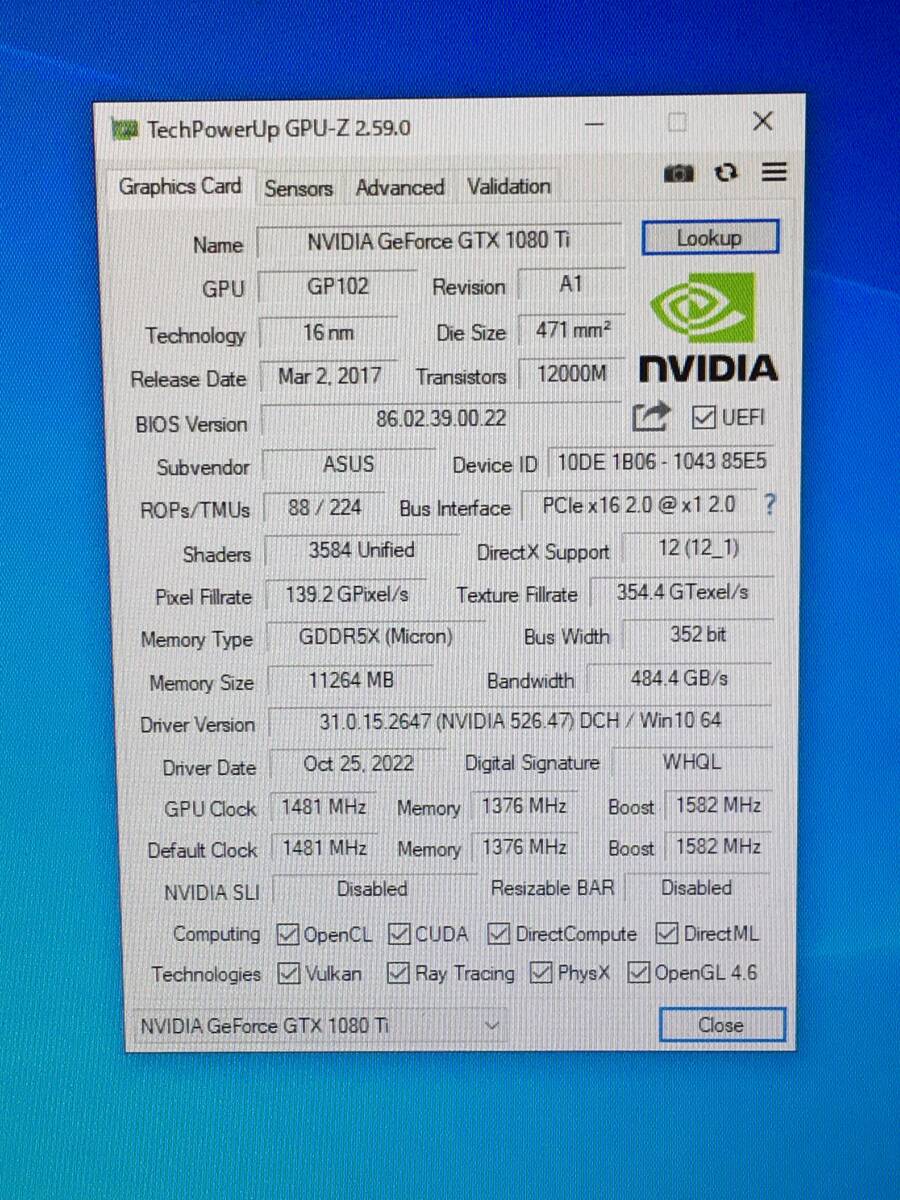 ASUS NVIDIA GeForce GTX1080Ti 11GB (TURBO-GTX1080Ti-11G) グラフィックカード 中古動作品 | |||