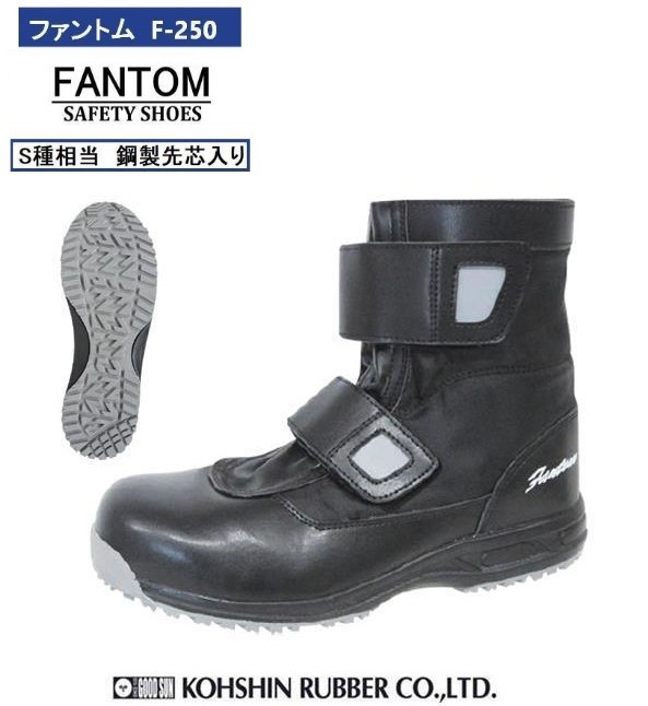ビックイナバ特価◆弘進ゴム 高所作業用安全靴 ファントムF-250【ブラック・24.5cm】ベルトタイプ・鋼製先芯・耐油の品が、即決1980円★