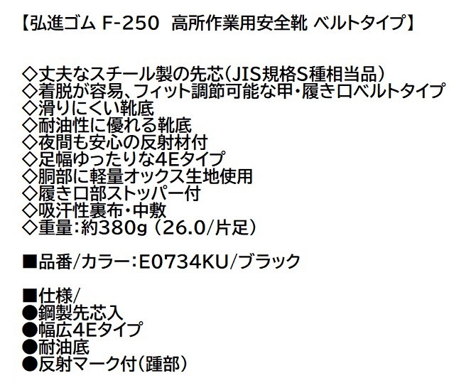 弘進ゴムの高所作業用安全靴 ≪F-250≫ を特別価格にて提供します。