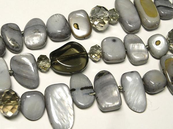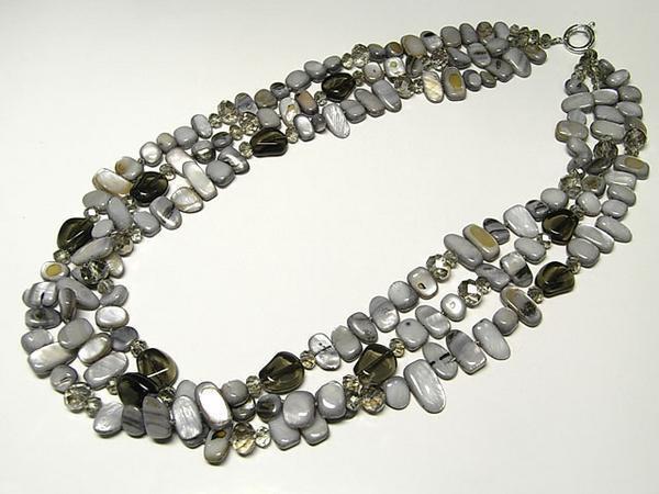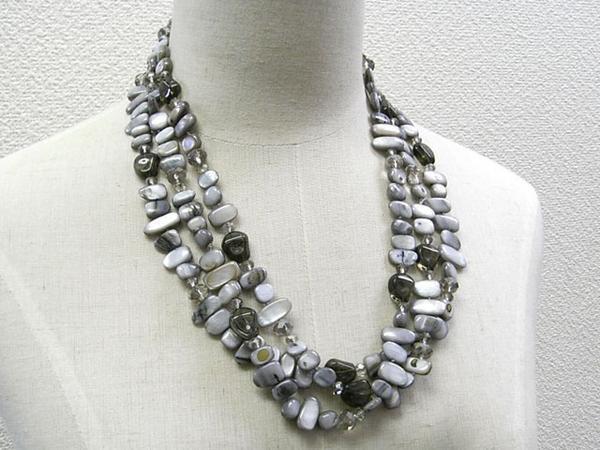 つやのあるシェルビーズをふんだんに使用した豪華なネックレスです。