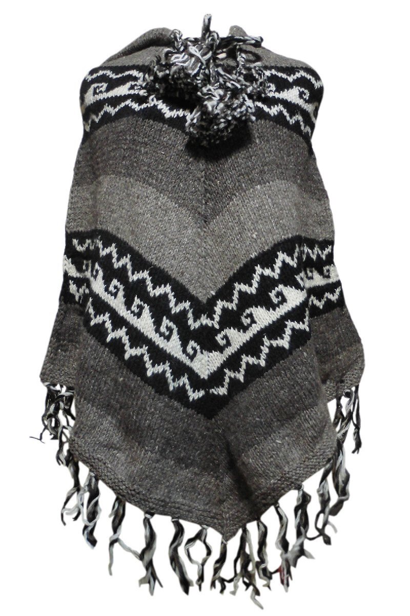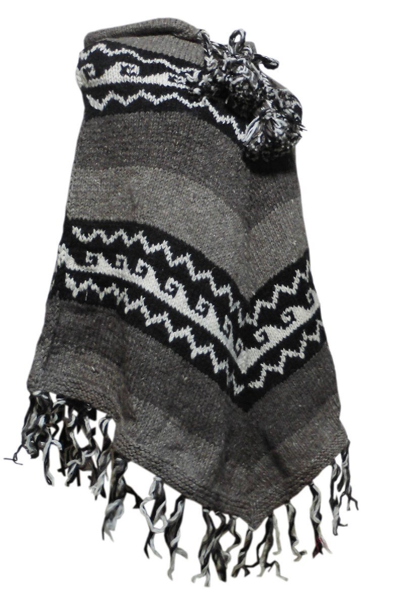 ■☆アジアン衣料 ネパール手編みフード付きポンチョ(WP-17)