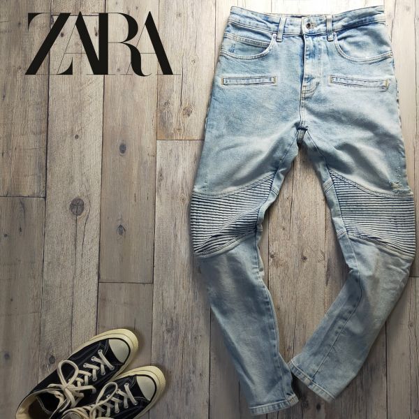 ☆ZARA MAN ザラ☆USED加工 ストレッチ バイカー デニム パンツ W30 S450