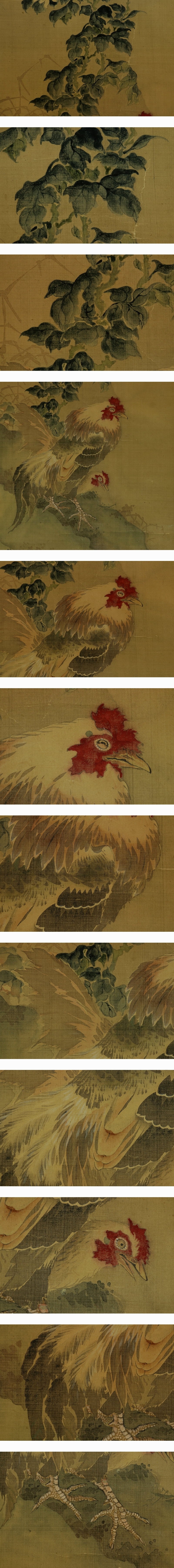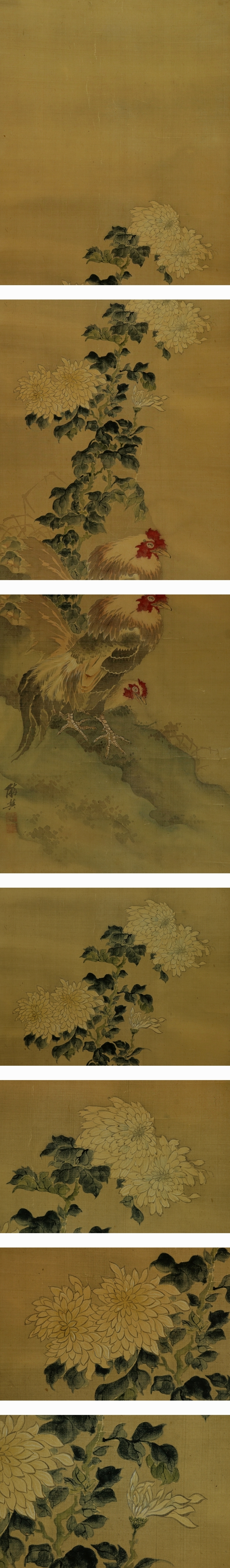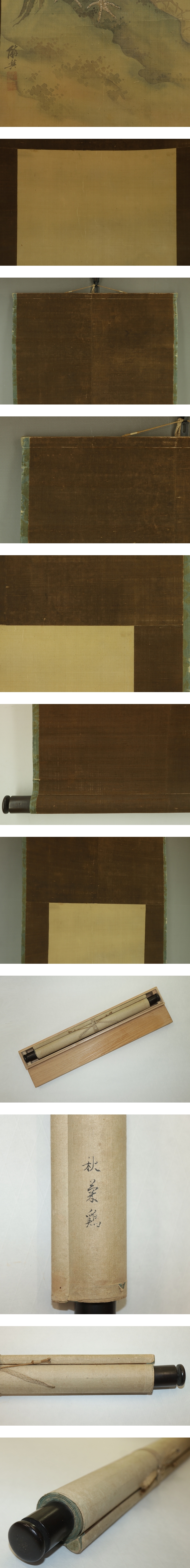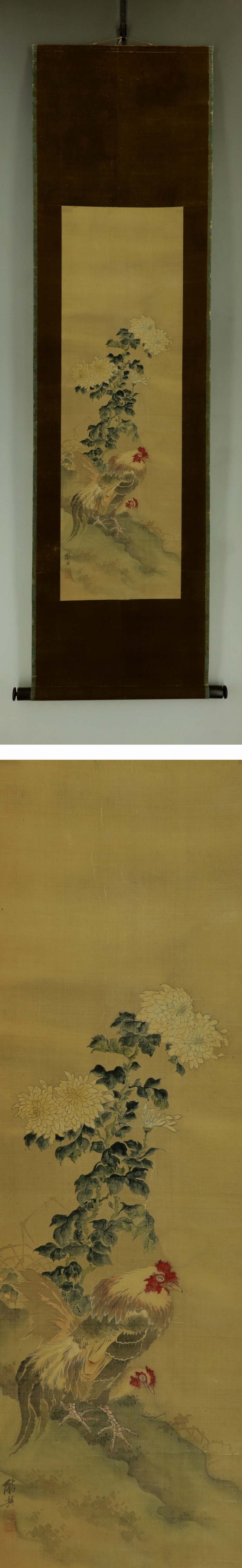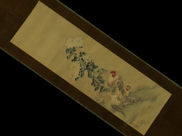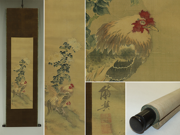 | №2406073【肉筆】古画【菊に双鶏】◆絹本◆合箱◆掛軸 | |
