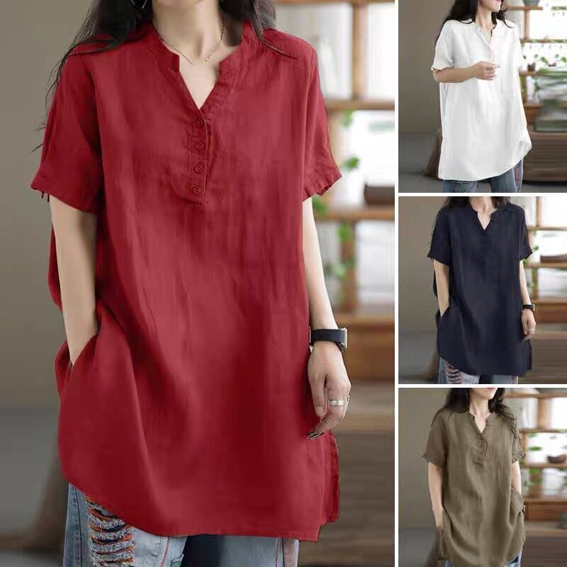 Mサイズ採寸: 着丈88cm バスト104cm 肩幅43cm 袖丈23cm L サイズ採寸: 着丈89cm バスト108cm 肩幅44cm 袖丈24cm XL サイズ採寸:着丈90cm バスト112cm 肩幅45cm 袖丈25cm 2XLサイズ採寸:着丈91cm バスト116cm 肩幅46cm 袖丈26cm 素材 : 綿麻 |