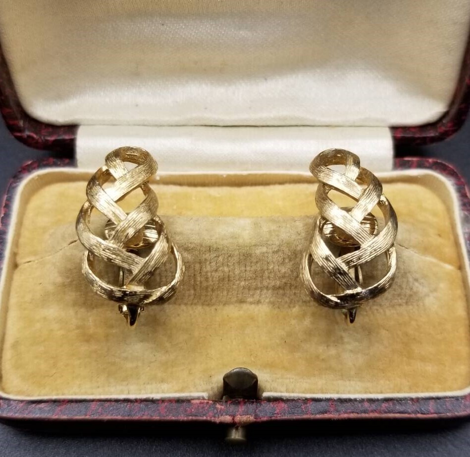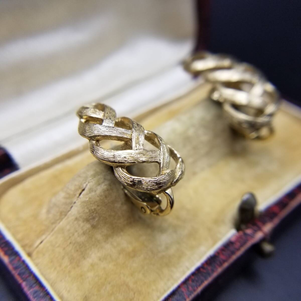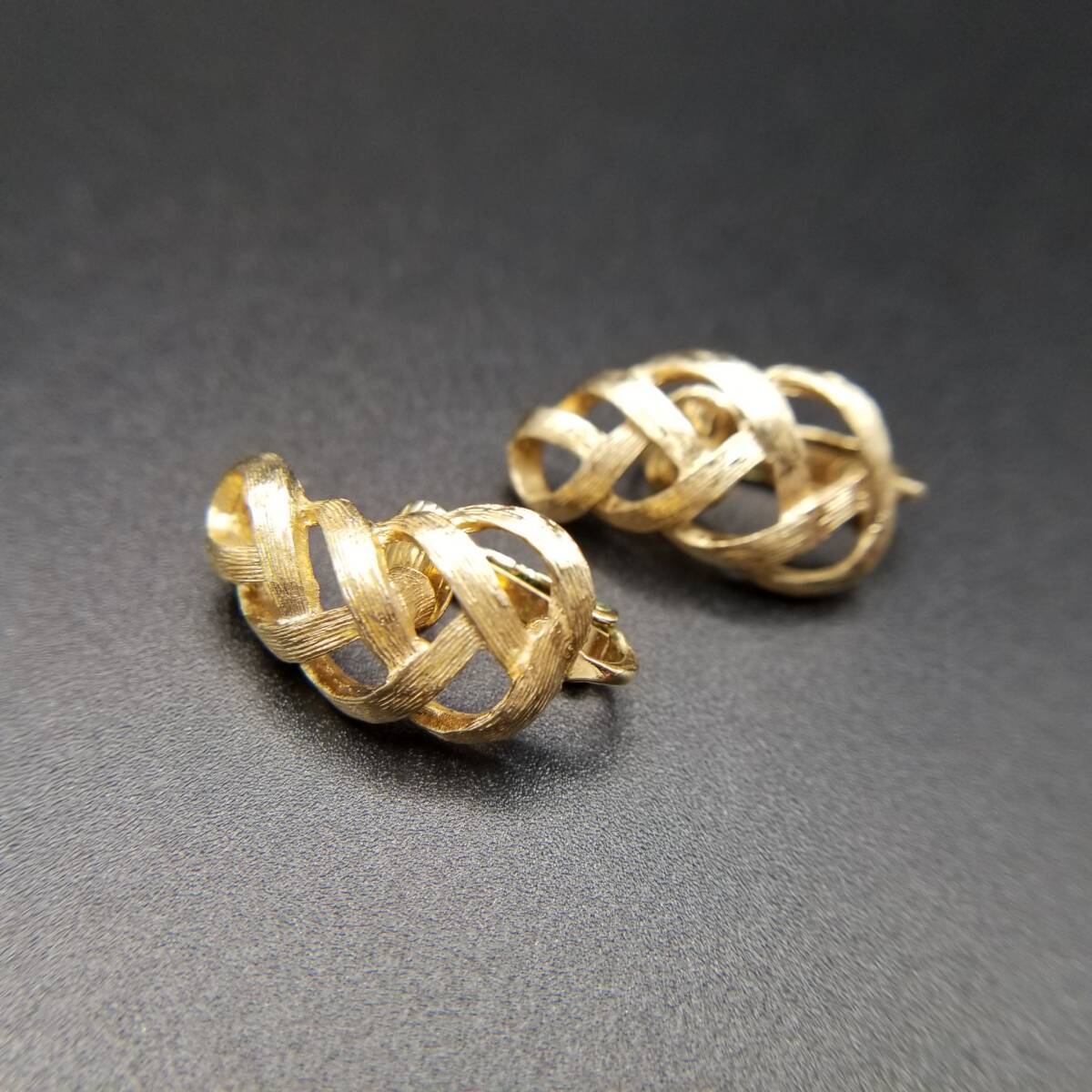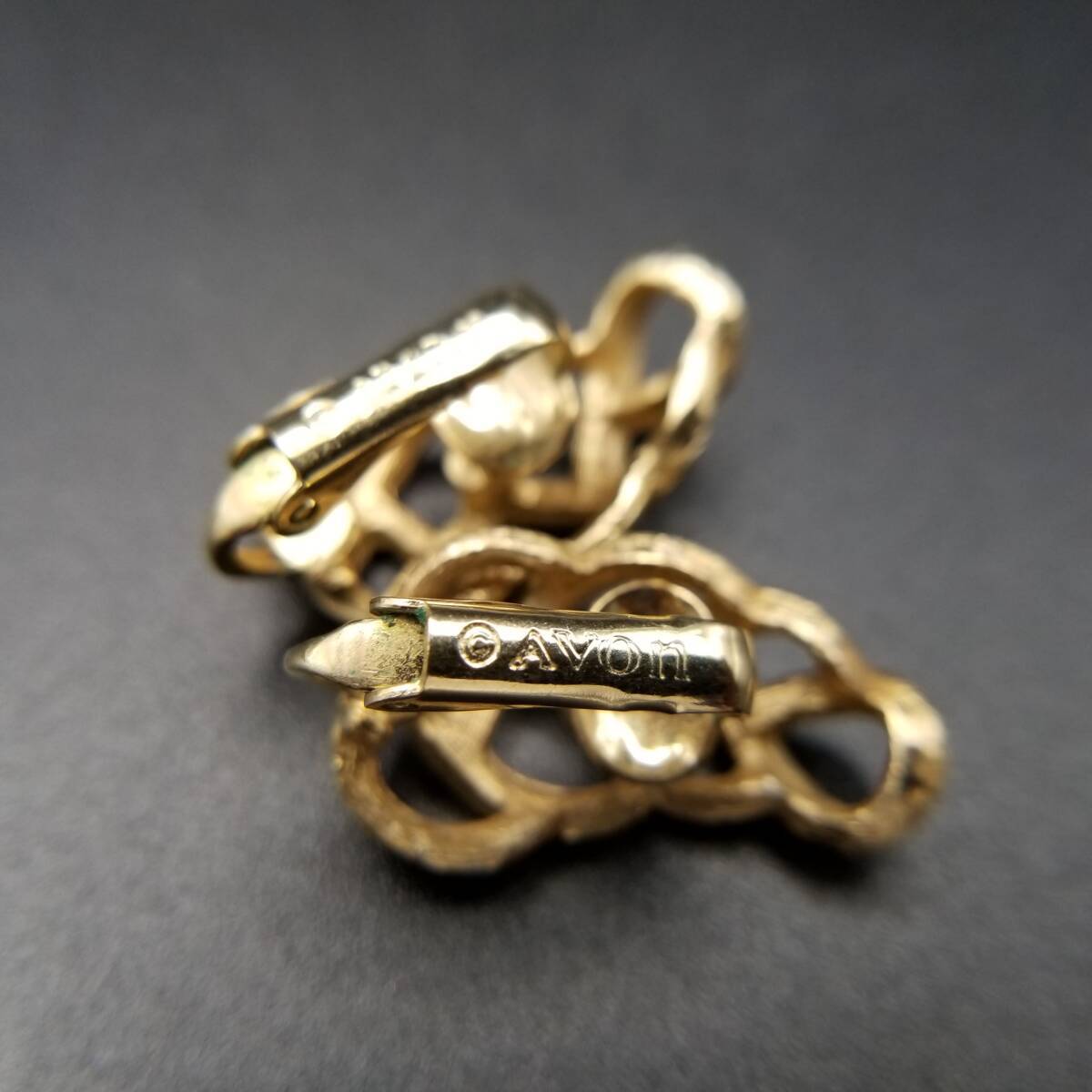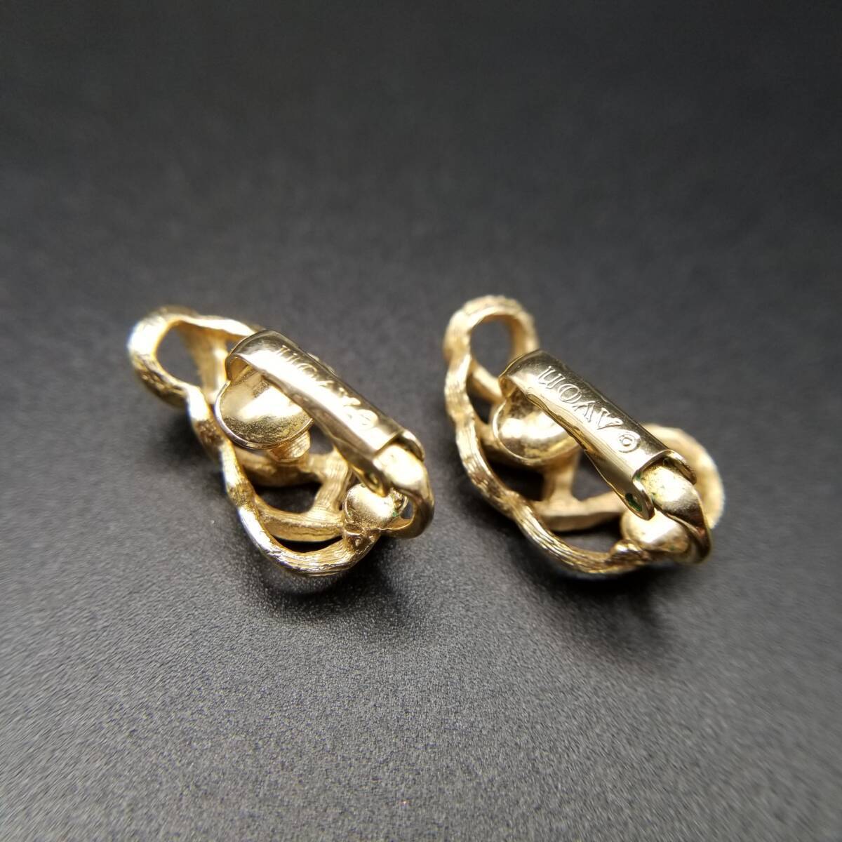 AVON クロスノット 結び 葉っぱ型 ヴィンテージ クリップイヤリング ゴールドトーン 上品 エレガント Y18-M