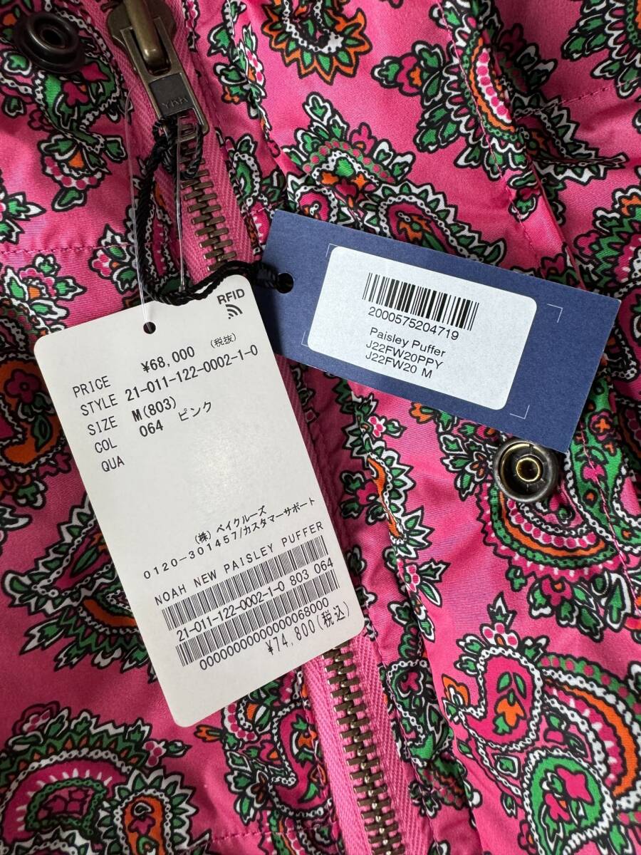 新品 レア!2022AW NOAH ペイズリー ダウンジャケット ピンク イタリア製★supreme visvim モンクレール DUVETICA カナダグース マルジェラ