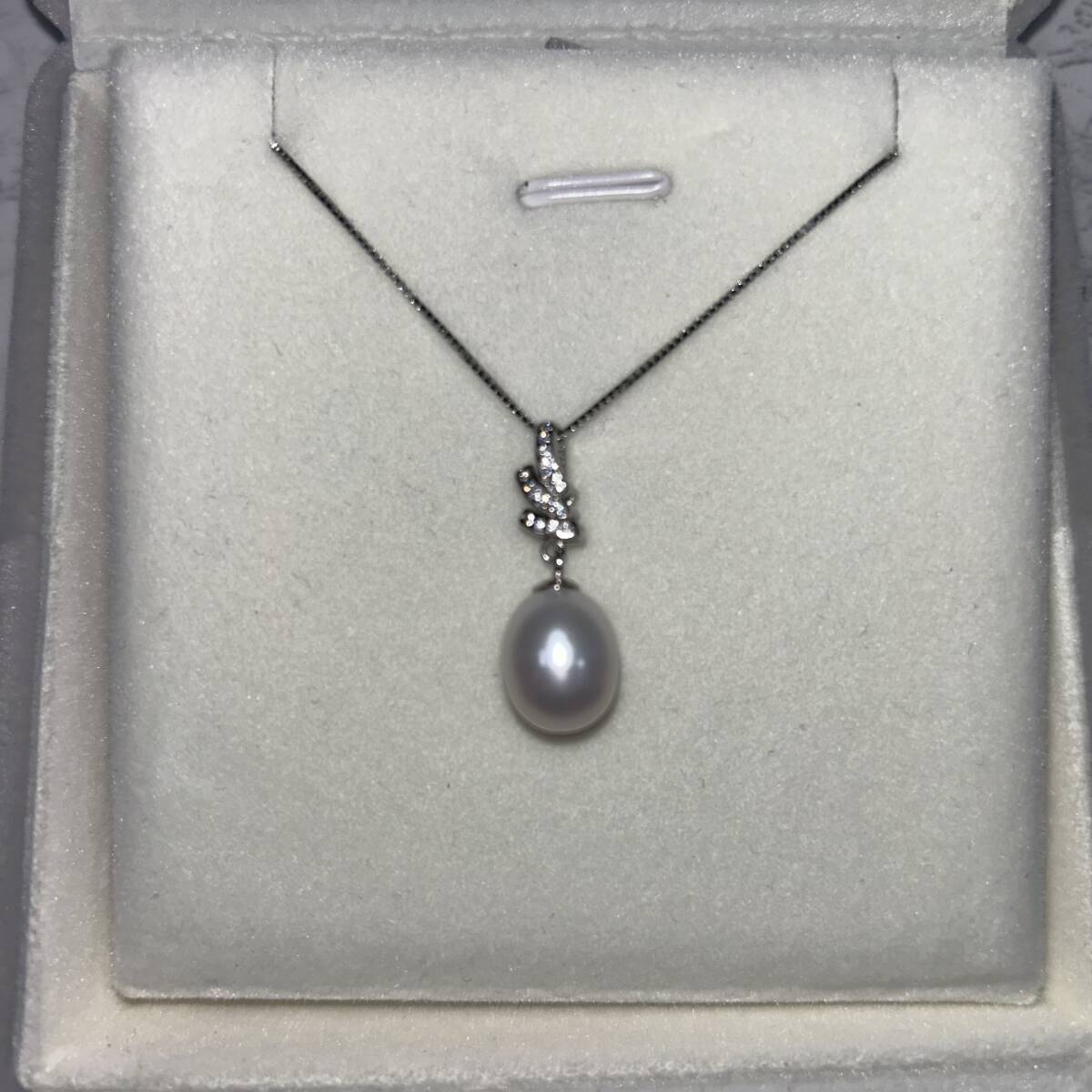 スターリングシルバー ネックレス《spiral: pce011》一粒 淡水パール シルバー925 ホワイト ベネチアンチェーン 42cm シンプル 上品 新品