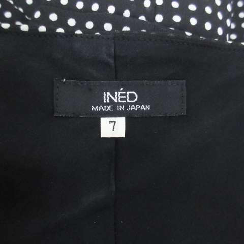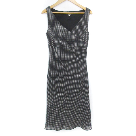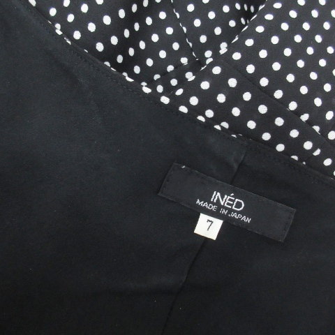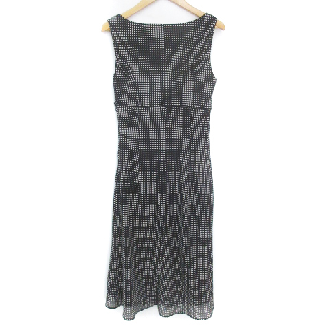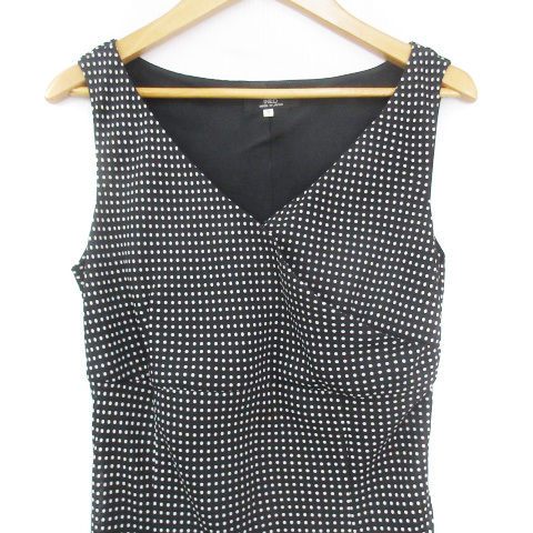イネド INED フレアワンピース ロング丈 ノースリーブ カシュクール ドット柄 水玉柄 7 S 黒 白 ブラック ホワイト /FF6 レディース