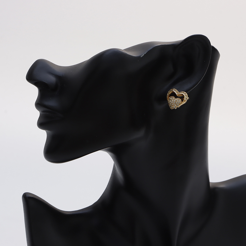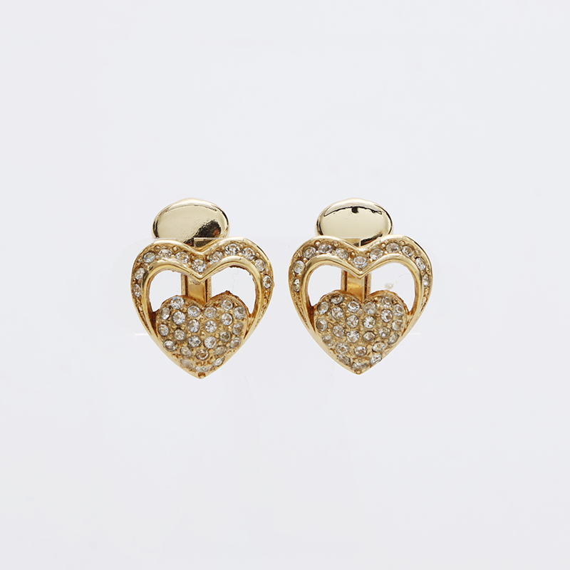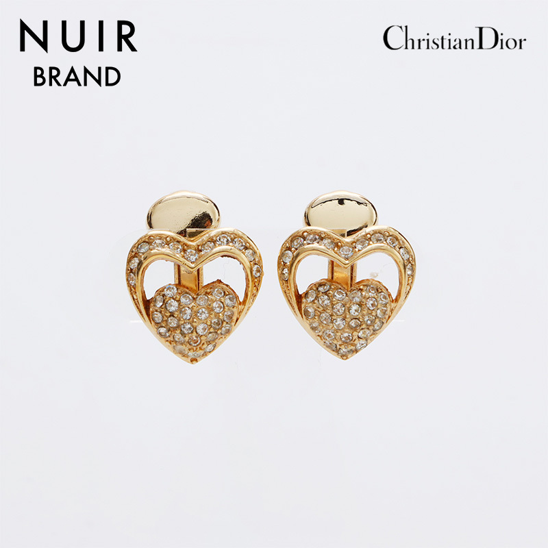 極美品 Christian Dior ラインストーン ハート イヤリング ゴールド