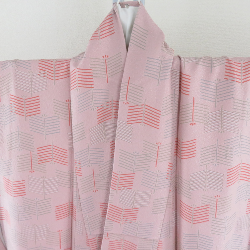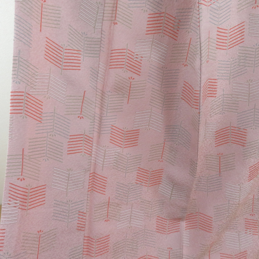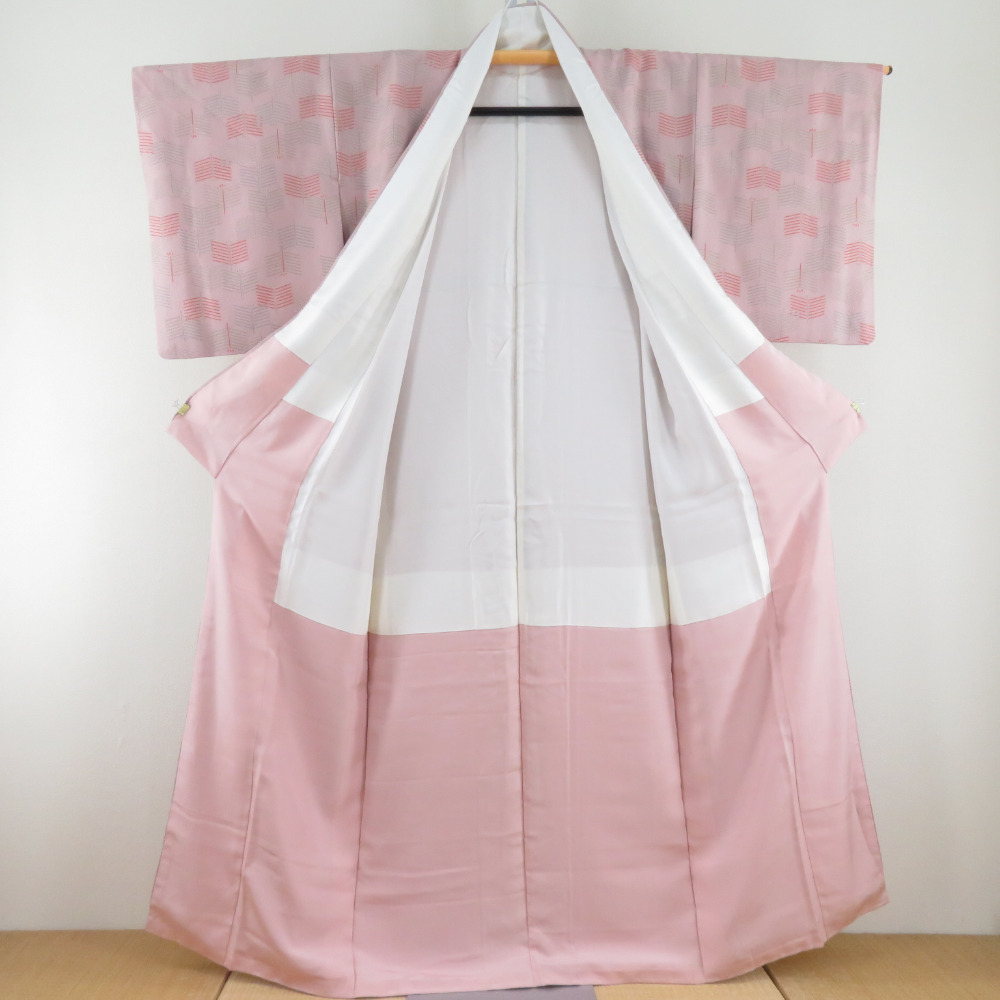 | 小紋 松葉文様 袷 広衿 薄紫色 正絹 仕立て上がり カジュアル着物 身丈157cm |