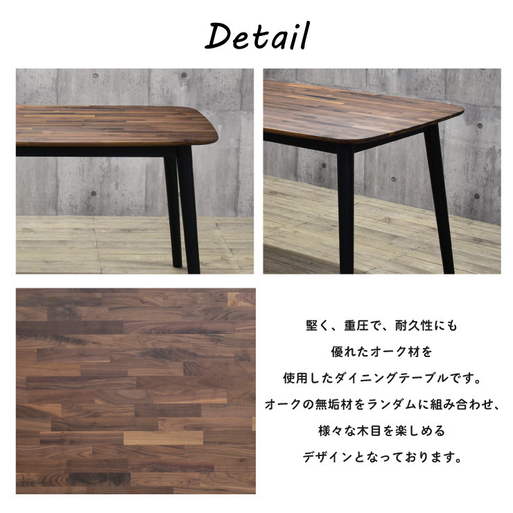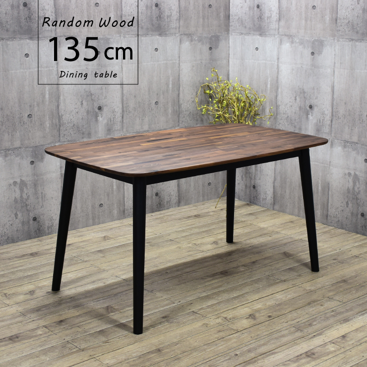 ダイニングテーブル 幅135cm ウォールナット色 ブラック色 モザイク調 tmb135-351wb ミックス 節有り 木目 ランダム 作業台 6s-1k mz