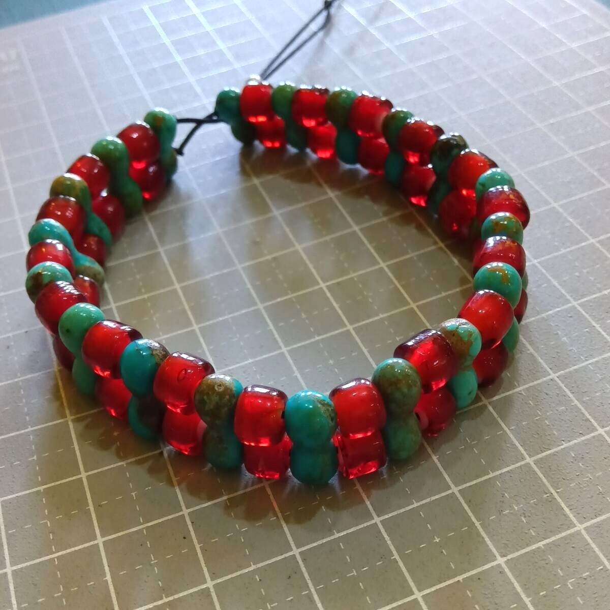 ターコイズ、ホワイトハーツビーズ、シルバー925ビーズを組み合わせた ブレスレットです