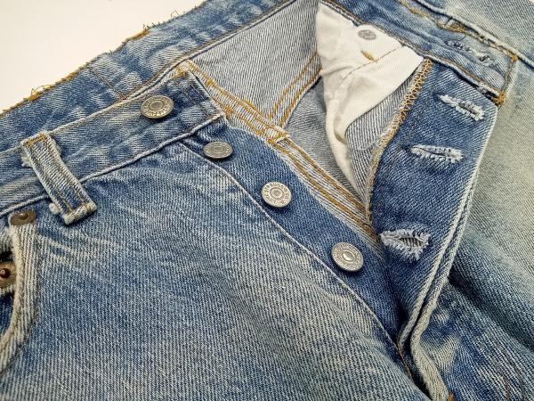 サイズ: ウエスト約38cm 股上約28cm 股下約75cm 裾幅約19cm 状態説明:全体的に使用感あり。両膝に破れ・汚れあり。左ポケット破れあり。パッチ割れあり。 |