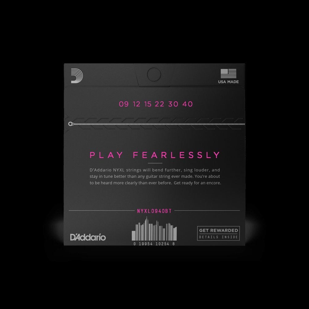 NYXLシリーズは、これまで市場に出たどの弦よりもチョーキング強度が向上、大音量かつチューニング安定性の優れた弦です。ニューヨー クに拠点を置くD'Addario社によって考案、開発、製造されたこの新しい弦は、芯線とプレーン弦に破断強度に優れた高炭 素スチール(HCS)を採用、プレイヤーにこれまでにないレベルの演奏性、安心感、パワーを提供するものとなっています。新しく考案された伸線工程と革新 的なワイヤーより合わせ(fusion twist)工程により、従来の弦よりも強度がアップ、チューニングの安定性は 131%向上しました。配合が見直されたニッケルメッキ製の巻き弦を使用、高い磁気性によるアウトプット増で中域が強調され、存在感のあるクランチの効いたサウンドになっています。