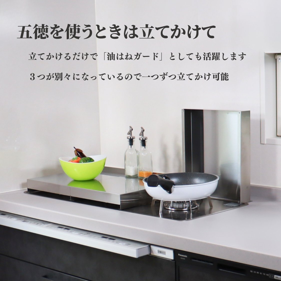 ガスコンロのサイズや五徳の形状によっては設置できない場合がありますのでサイズ等を十分にご確認ください
