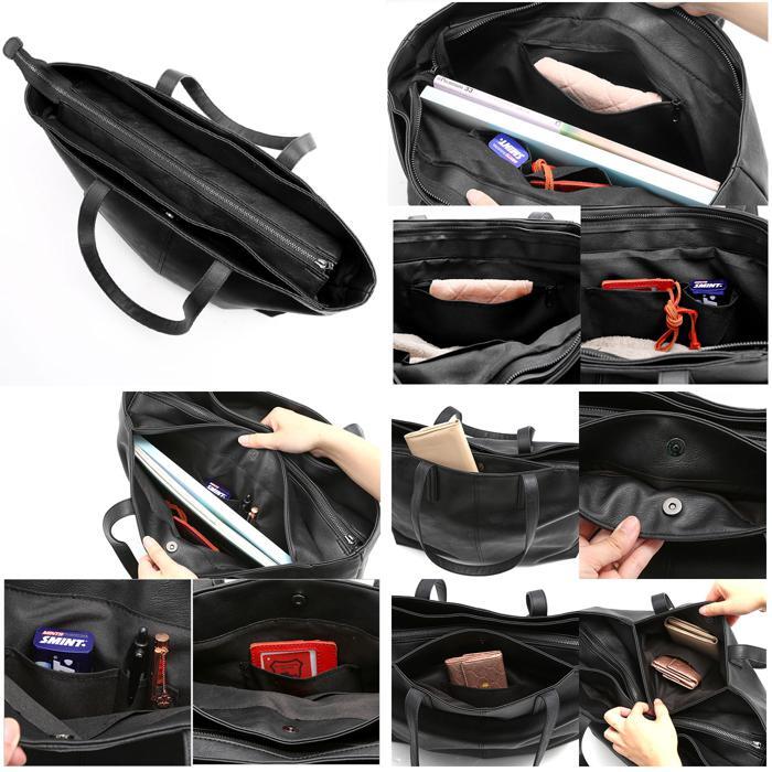 商品説明 | ・ビジネスにもカジュアルにも使える両あおりポケット付きのトートバッグが登場。 ・メイン収納はファスナー式でB4サイズに対応!オープンポケット×2・ファスナーポケット×1を搭載。 ・フロント側あおりポケットはマグネットボタン仕様。A4サイズがぴったり収納できるので、書類やファイルがサッと取り出せる。内側には、名刺入れやパスケースの収納に最適なオープンポケット×2、ペン挿し×2を装備。 ・背面側のあおりポケットは長財布やスマホを収納するのにちょうどいいサイズ感♪こちらもマグネットボタンで簡単開閉が可能で、内側にはミニオープンポケットを1つ配置。 ・持ち手が長めなので、肩掛けがしやすく、持ち運びもスマート♪ ・フェイクレザーが上品で落ち着いた雰囲気に仕上げてくれるアイテム。 |