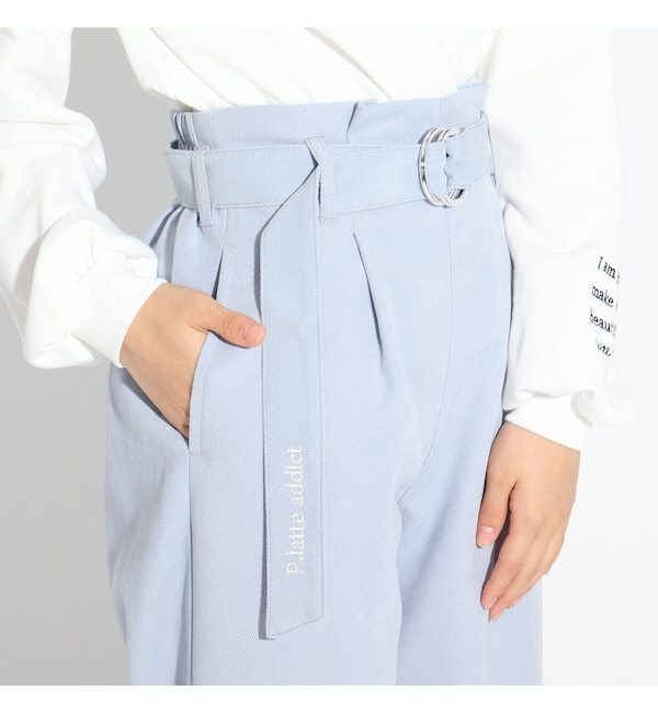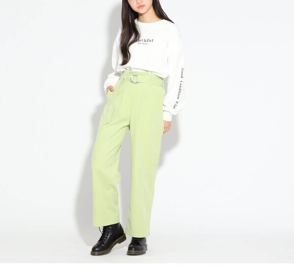 新品 PINK-latte ニコラ掲載ベルト付きワイドパンツ ライトグリーン(021) 02(165cm) 定価3190円