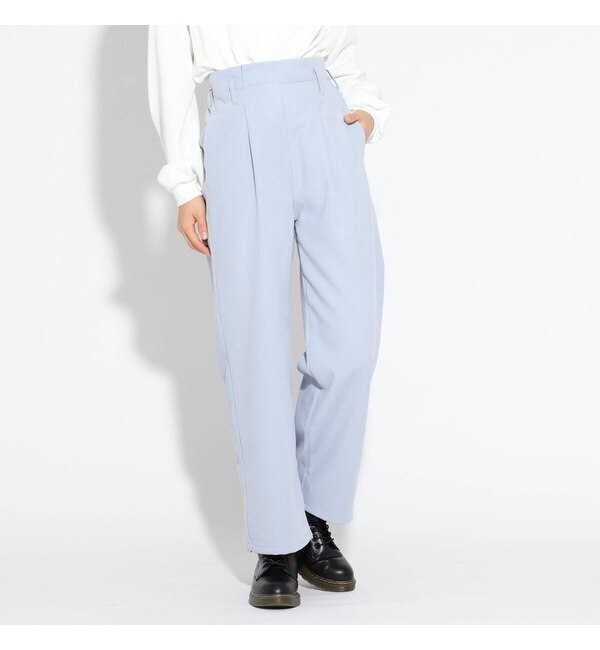 ラウンドバックルがポイントの、秋冬コーデに合わせたいベルト付パンツ。