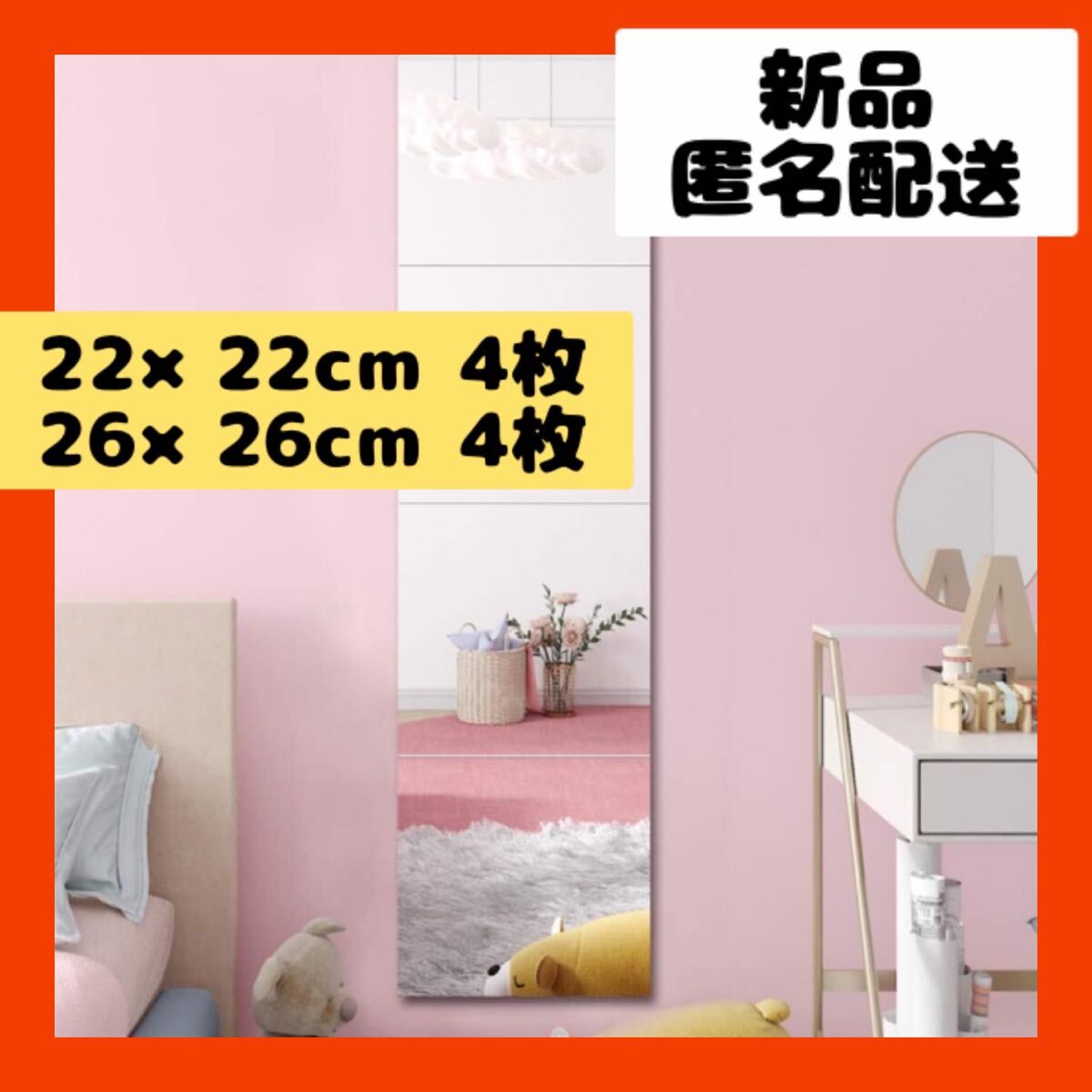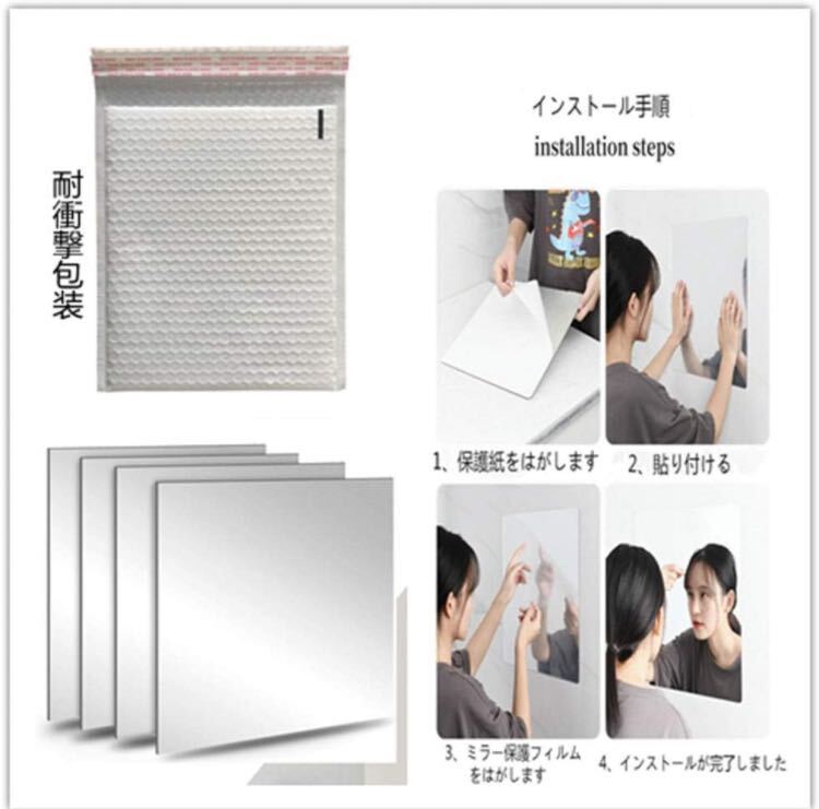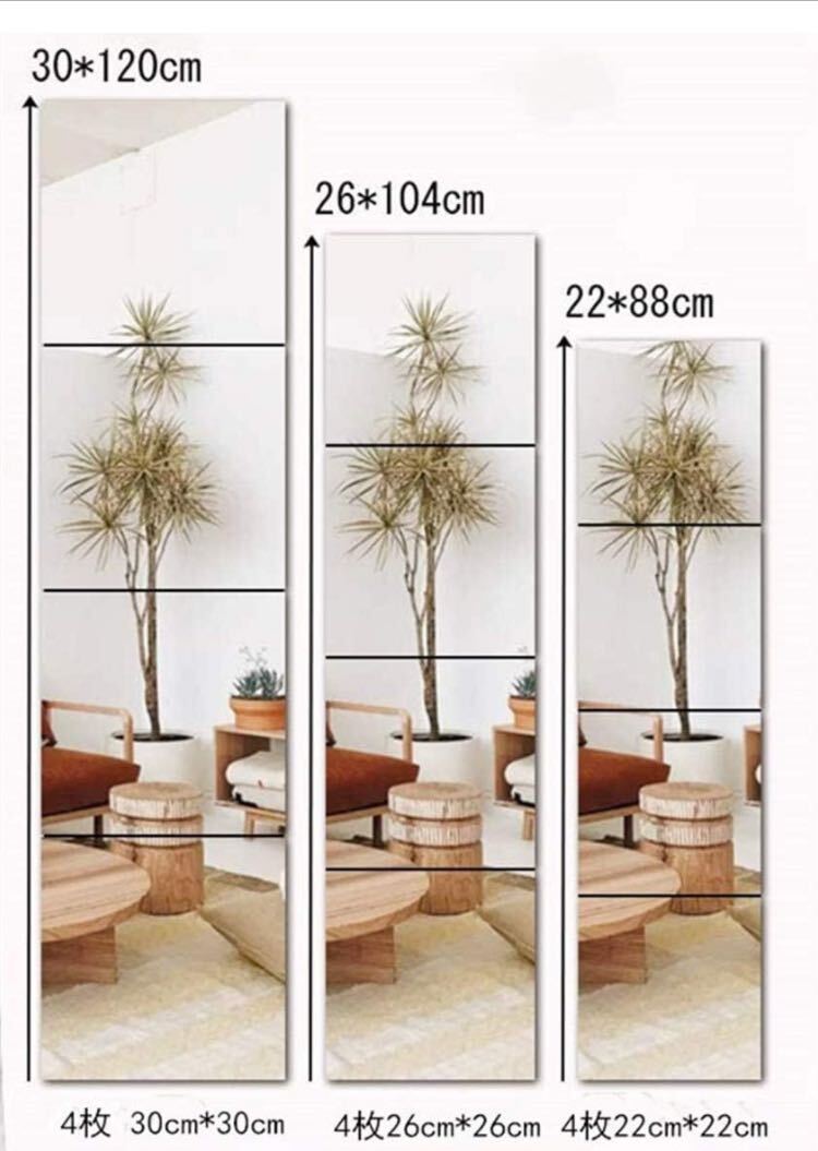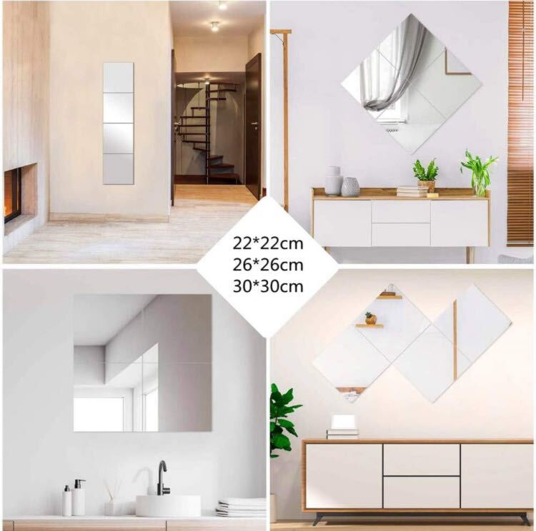 全身鏡 貼る鏡 ガラス ミラー姿見 鏡 自由組合鏡 ウォールステッカー 鏡 飛散防止 取り付け簡単22cm*22cm 4枚 26×26cm4枚
