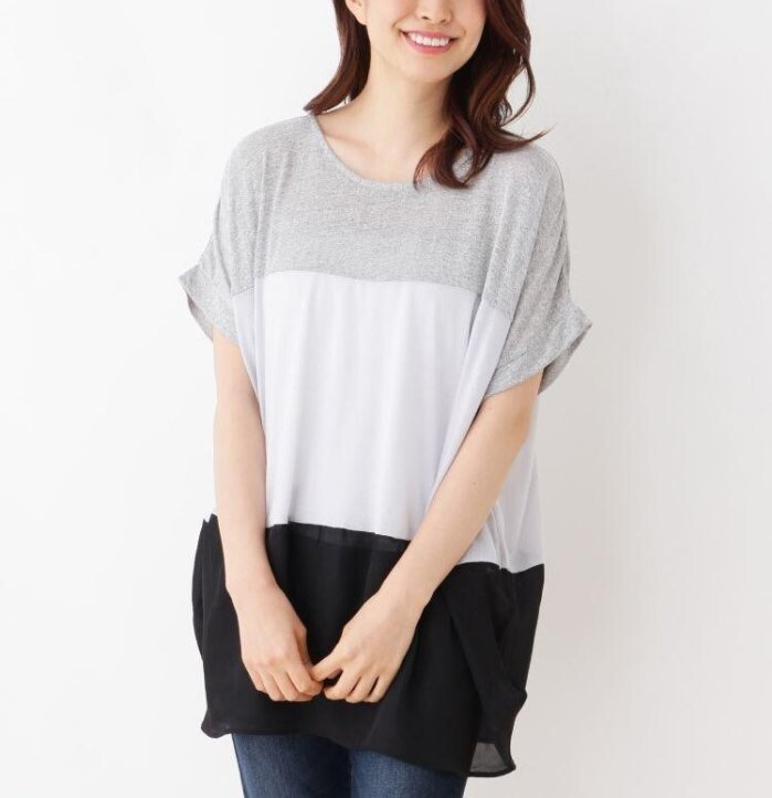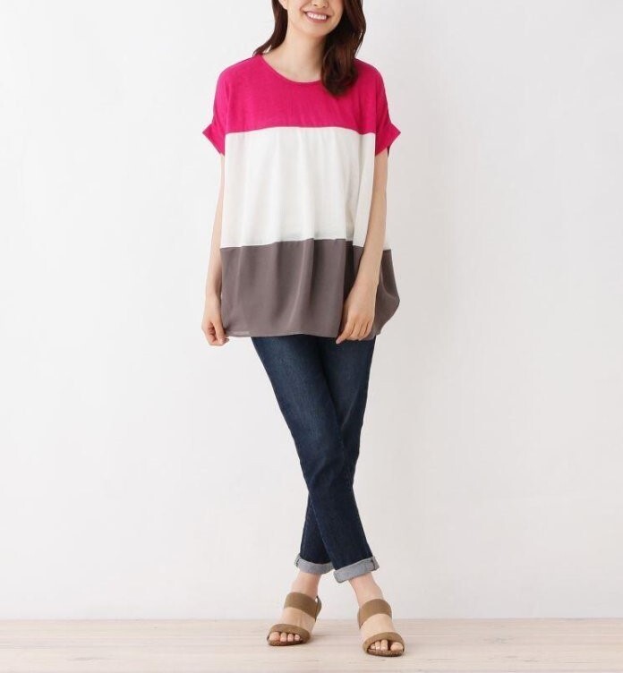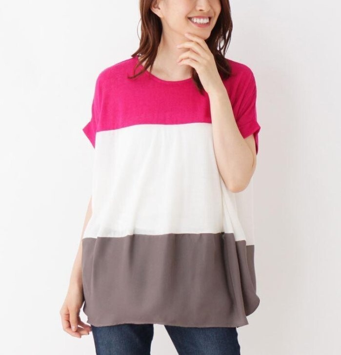 ビビッドな配色が目を引く3段切り替えのプルオーバー。
