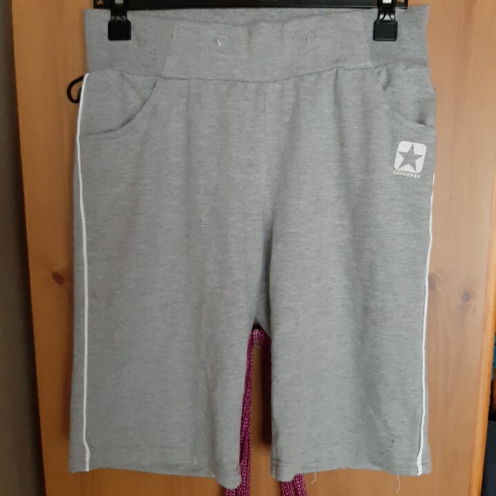 CONVERSEのグレーのミニ裏毛素材のサイドパイピングのハーフパンツ*