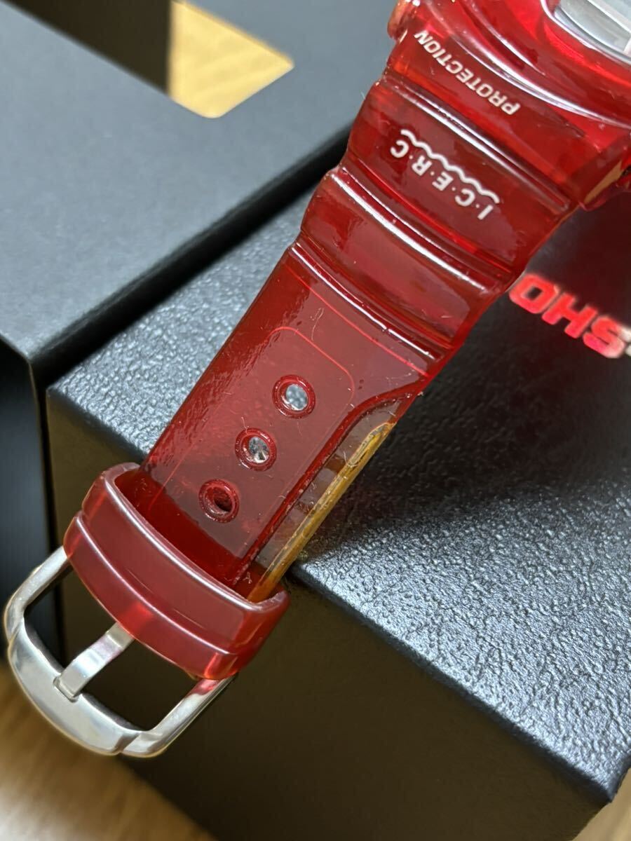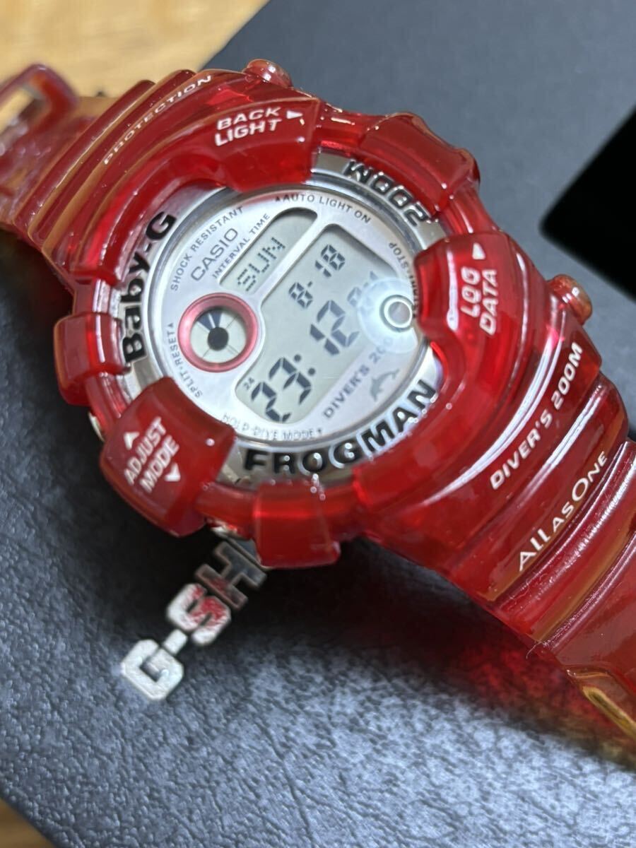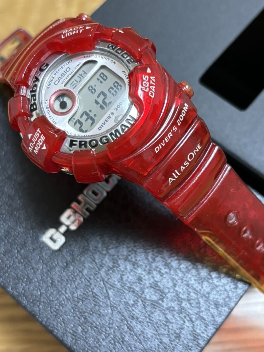CASIO 即決!ベビーG キャンディーレッド フロッグマン BGW-104K ガラス、裏ブタ保護シール付 付属品、箱付 このモデルにありがちなベルト、ベルトのコーティングの剥がれは有りません
