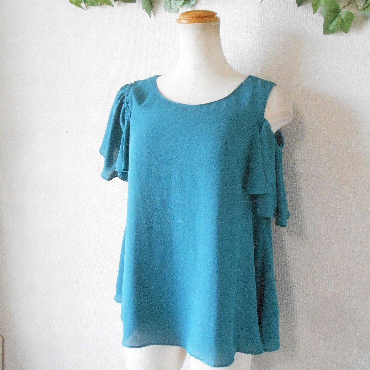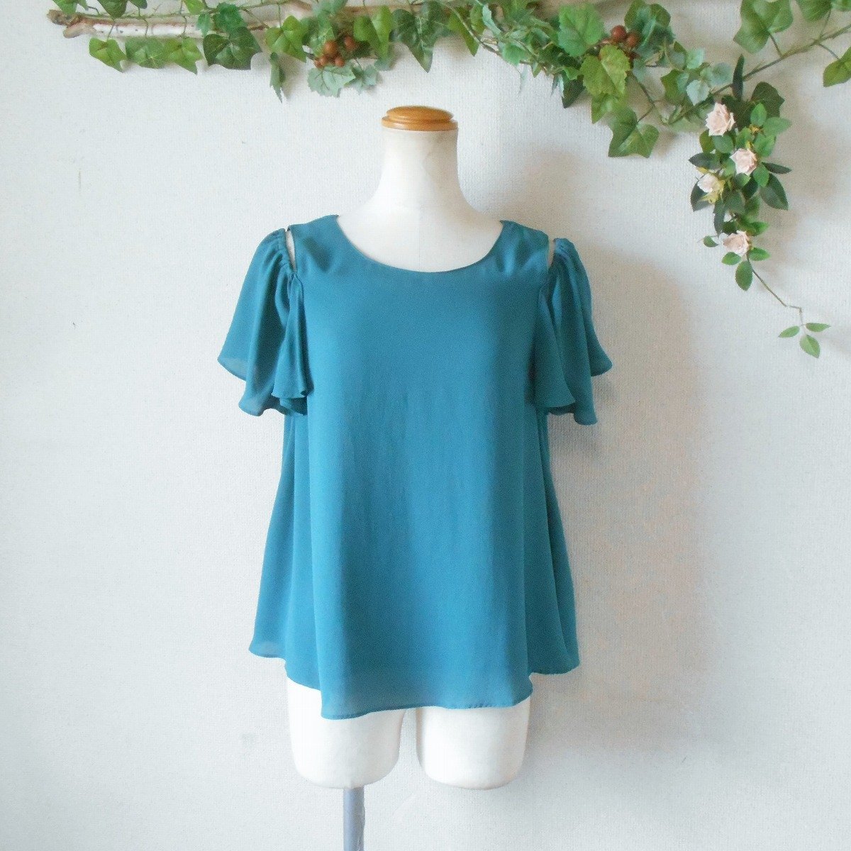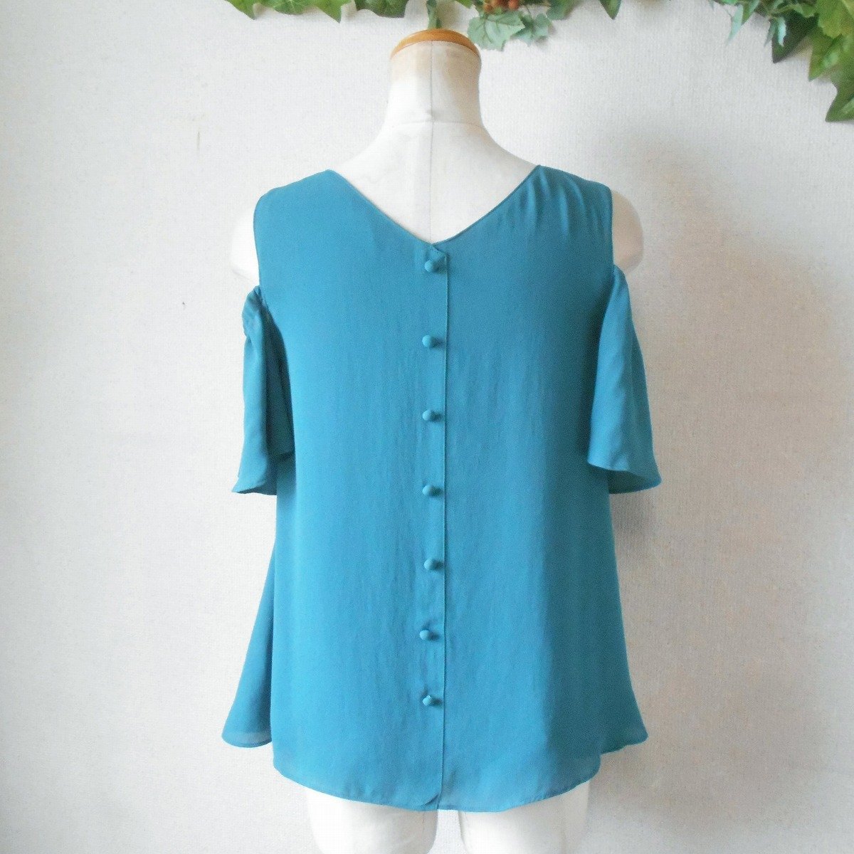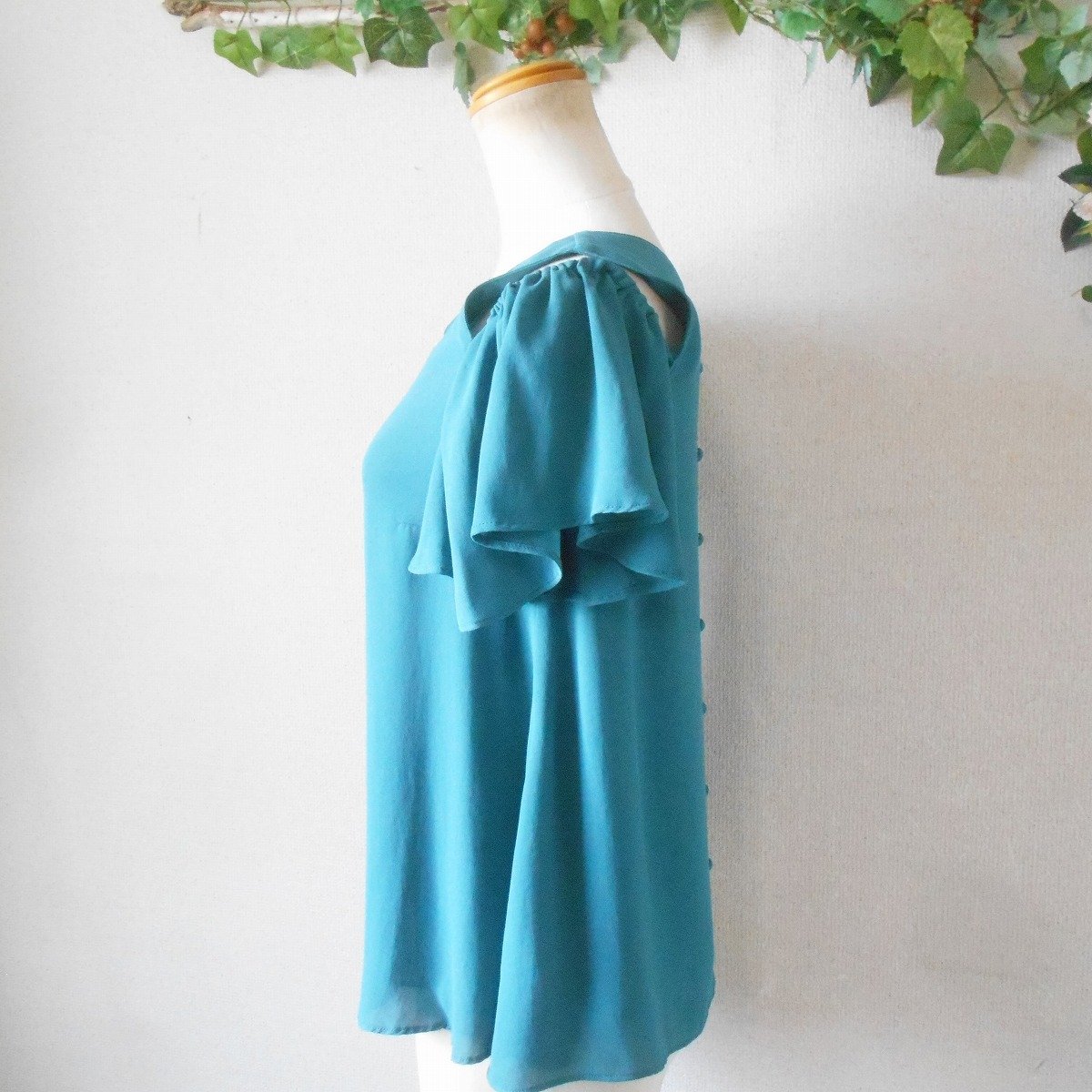 【ポイント】ジャスグリッティのブラウスになります。お色は濃いターコイズ系で夏を中心に着ていただけるお品です。