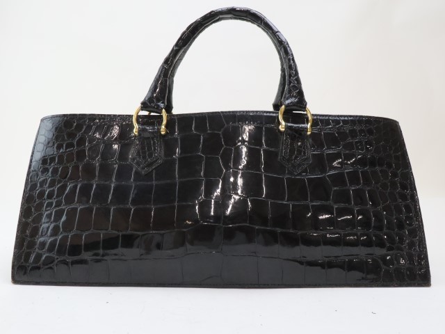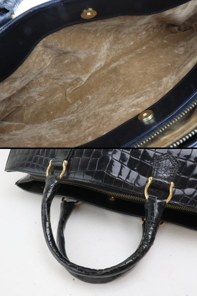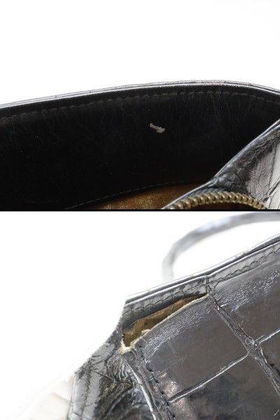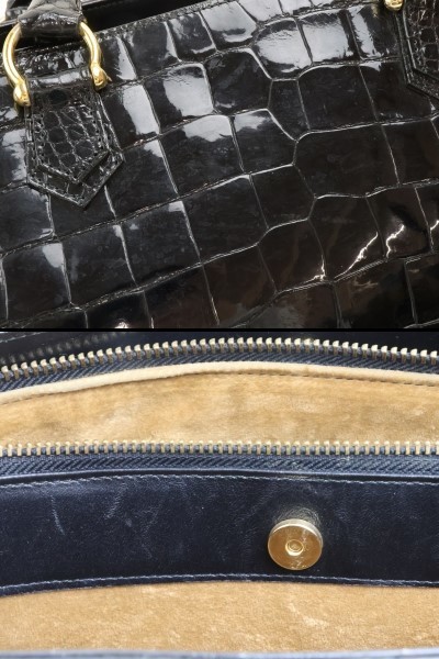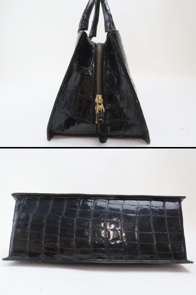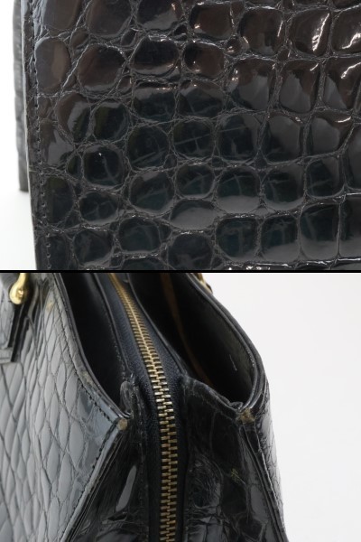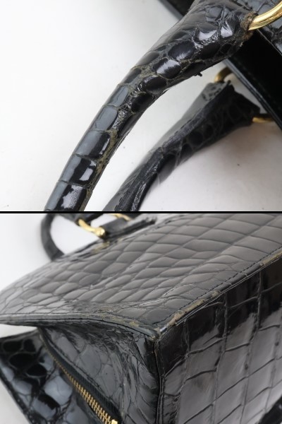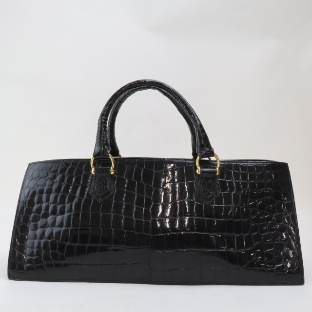 | 2402-45 クロコダイル製 ハンドバッグ 幅広クロコ ブラック 金金具 | |
