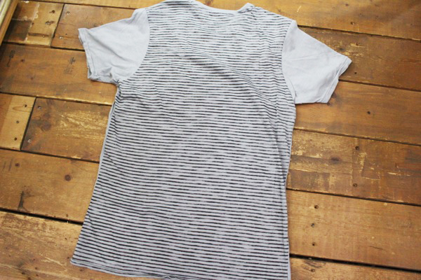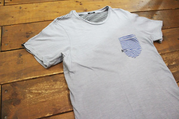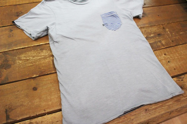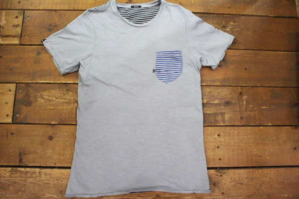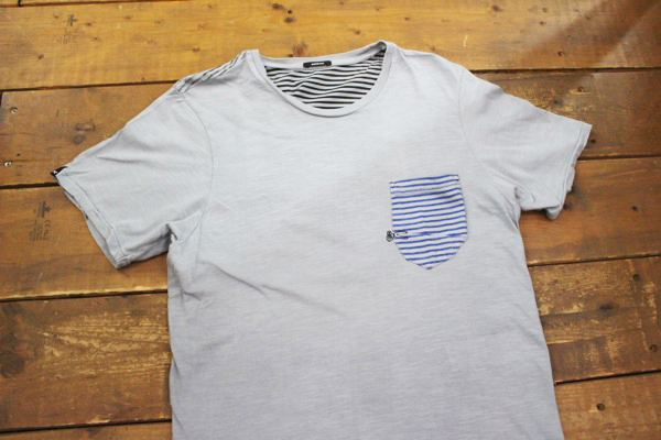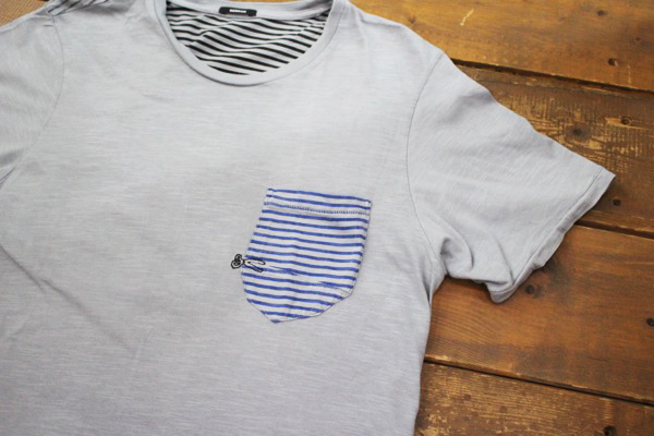 DENHAM/デンハム ポケット×シザー刺繍ボーダー切替Tシャツ 半袖 クルーネックTEE グレー系 メンズ トップス XSサイズ