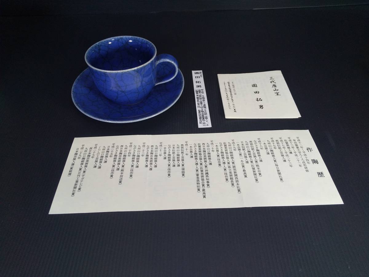 | 商品説明 | 品名:紺碧瓷コーヒー碗皿 作家:圓田拓男 寸法:碗 径9㎝ 高さ6.5㎝ 皿 径15.5㎝ 高さ2.2㎝ 状態:新品 美術年鑑評価額44万円(評価基準 陶磁器(花瓶)21.2㎝×21.2㎝) 三代 唐山窯 圓田拓男 ●西日本陶芸美術展 沖縄県知事賞 サガテレビ賞 ●西部伝統工芸展 熊本市賞 奨励賞 ●一水会展 一水会賞(最高賞) 佳作賞 ●九州山口陶磁展 毎日新聞社賞 佐賀新聞社賞 読売新聞西部本社賞 日刊工業新聞社賞 ●有田国際陶磁展 朝日新聞社賞 有田焼卸団地組合賞 ●佐賀美術協会展 佐賀美術協会賞(最高賞) 県立美術館長賞 ●ながさき陶磁展 佳作賞 審査員特別賞 ●日本陶芸展 賞候補 ●日本伝統工芸展 現代茶陶展 笠間陶芸大賞展 佐賀県展等、多数入選 |