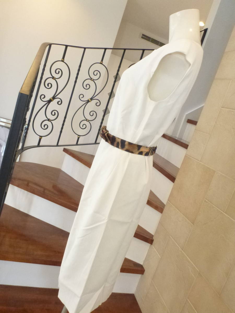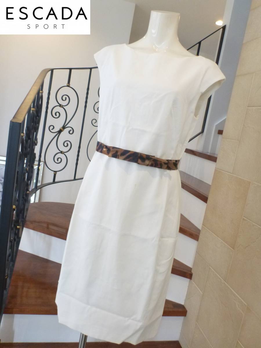 美品 ESCADA sport エスカーダ★白 ホワイト ベルト・ポーチ付き 膝下丈 ワンピース 36 M相当