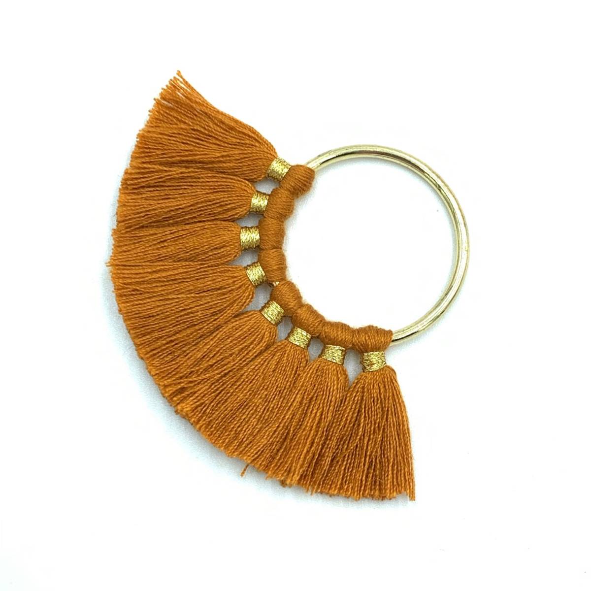タッセルチャームが8点付いたフープタッセルです。