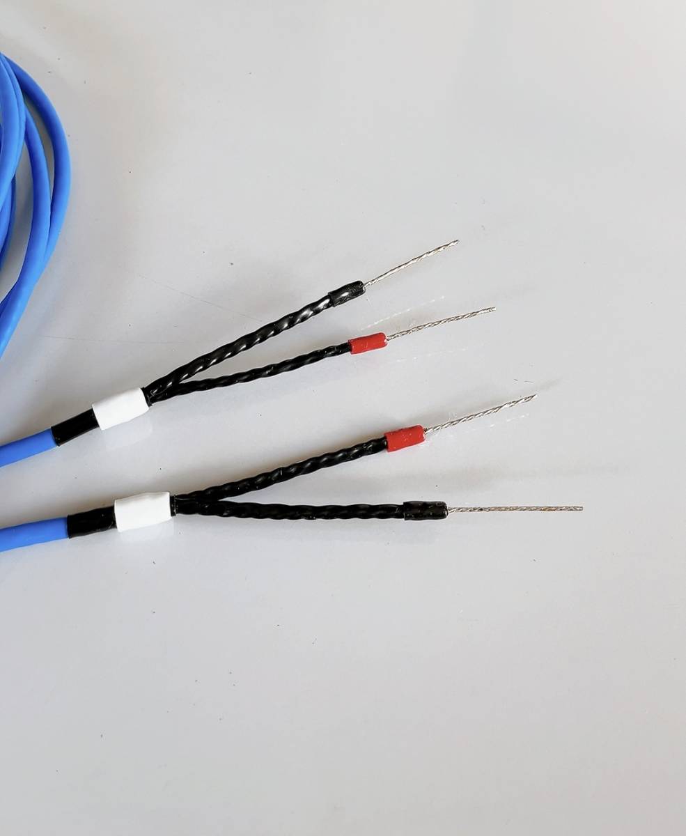 ・低性能ケーブルの特徴→2芯/大口径/±極対向ヒネリ導体は→音色の劣化が顕著で加工は簡単ですが不採用です。