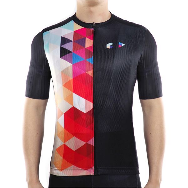 送料無料 新品 サイクルジャージ No69 ブラック Lサイズ フルジップ 半袖 ウェア メンズ サイクリング MTB ロードバイク