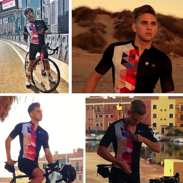 伸縮性があり体にフィットするためサイクリングに最適です。