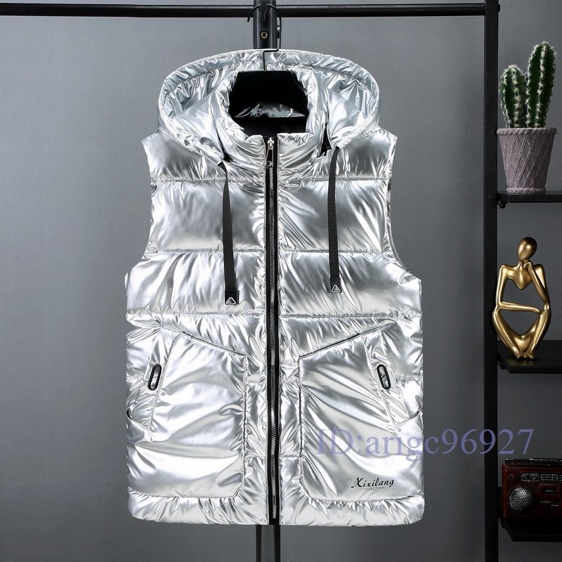 T273☆新品メンズダウンベストインナーベスト中綿ベストカジュアルチョッキ綿入りジャケットタンクトップ大きいサイズブラックS~5XL