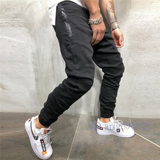 T524☆新品メンズ ジョガーパンツ チノパン ストレッチ カーゴパンツ スキニー ロング丈 ゆったり カジュアルパンツ ジャージ 黑 M