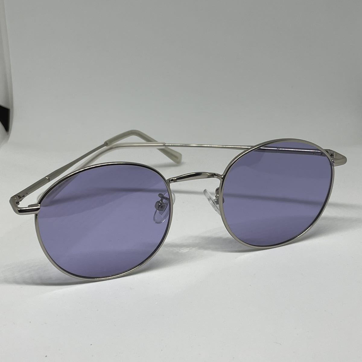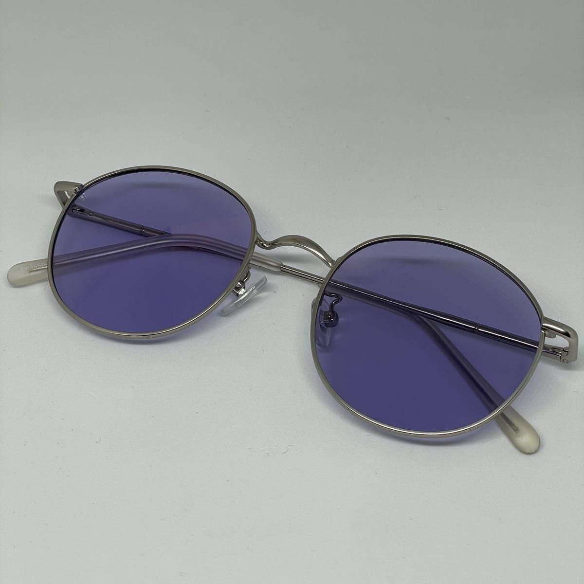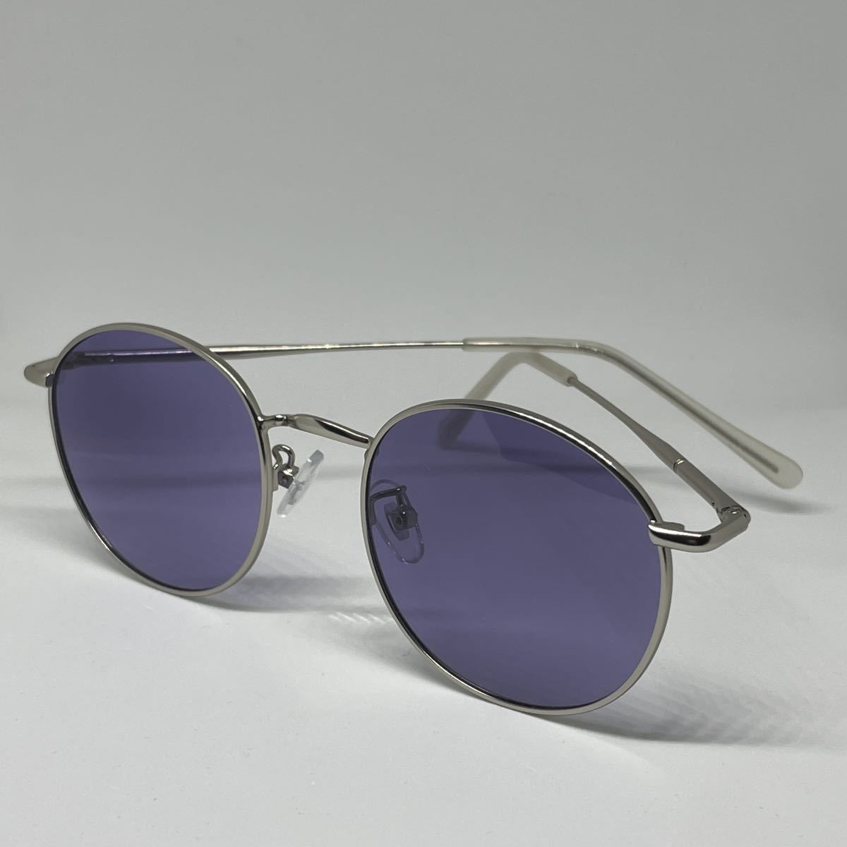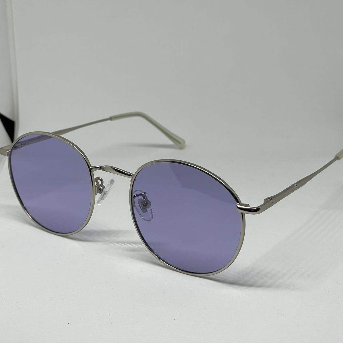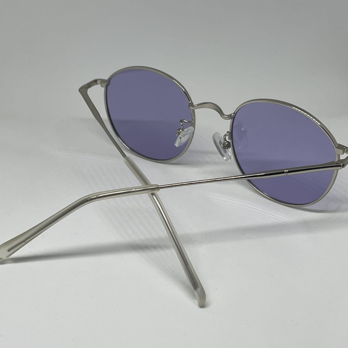 調光 偏光 ラウンドメタル UVサングラス ボストン ライトパープル レンズ マットシルバー 銀縁 伊達メガネ メンズ レディース