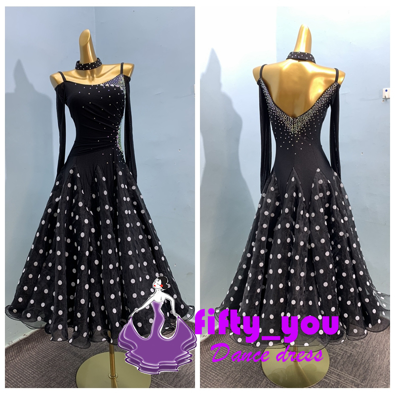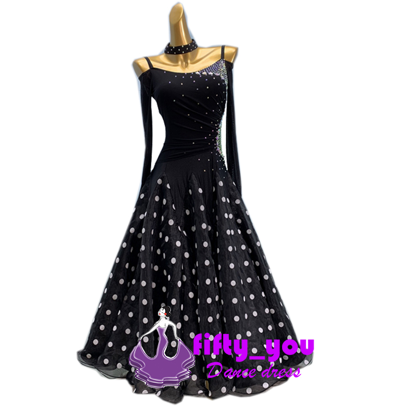 新品fifty_you レディース社交ダンス衣装 練習ストレッチ付素材ダンスワンピース モダンドレス サイズセミオーダー トッド柄スカート