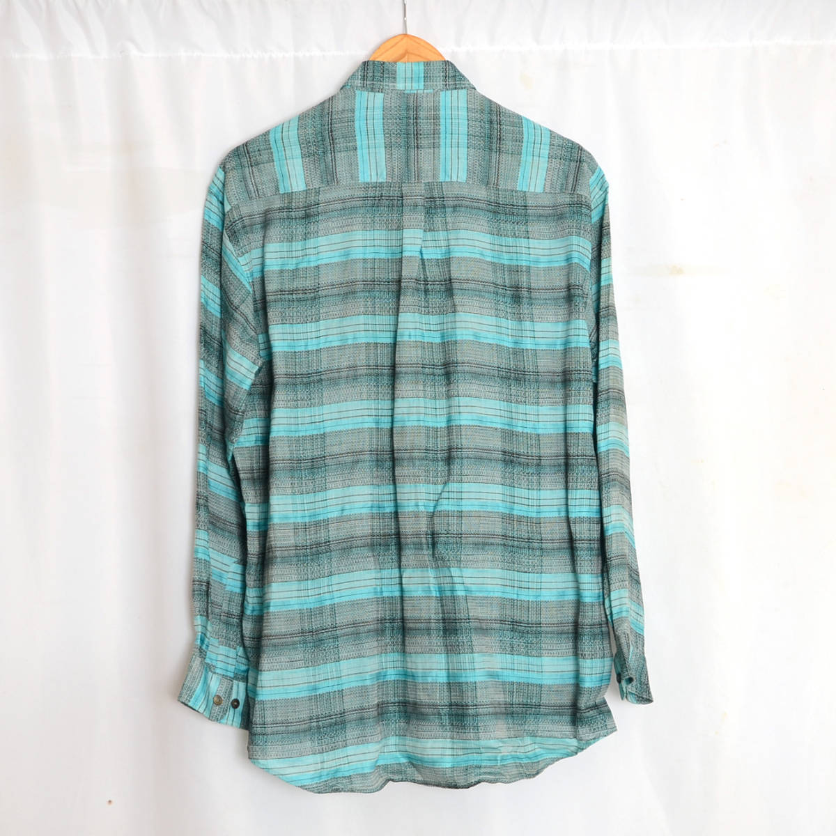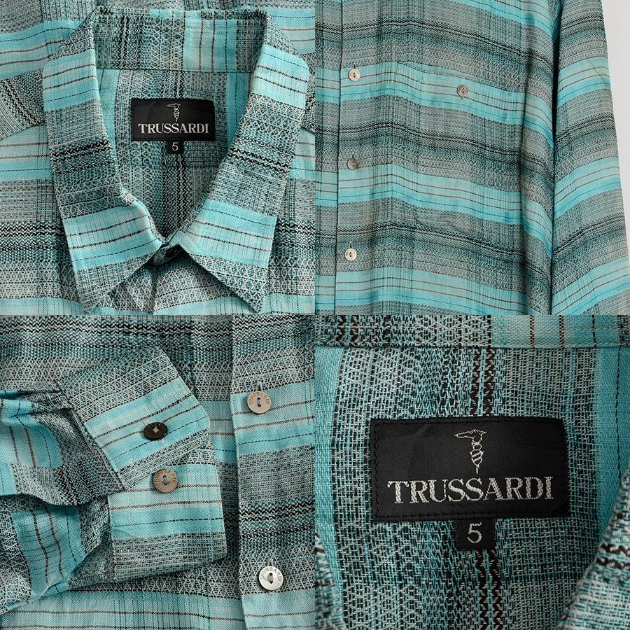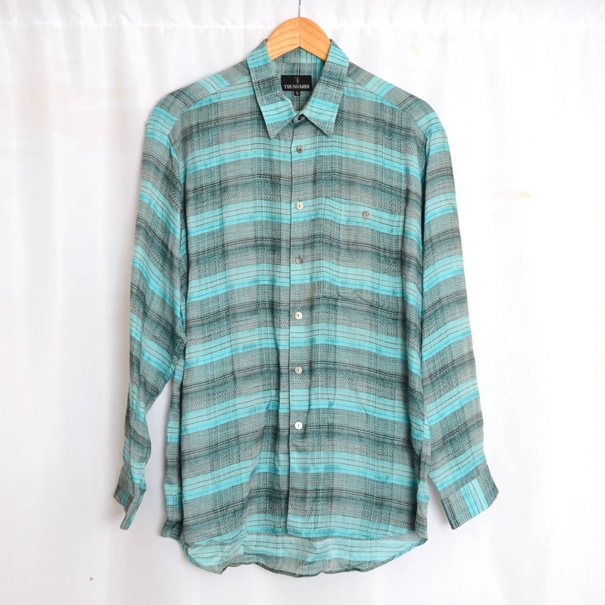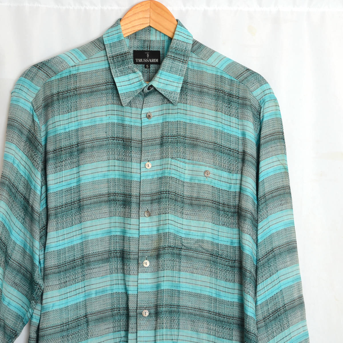 AS280 トラサルディ TRUSSARDI 長袖シャツ 5 / XL 肩48 麻 格子柄 メール便発送可 xq