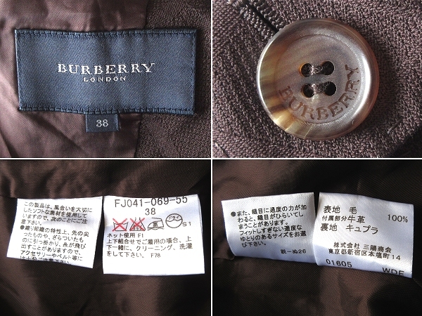 BURBERRY LONDON バーバリー ロンドン ウール 大判 バイアス シャドーノバチェック ジャケット コート 38 ブラウン 茶 三陽商会正規品