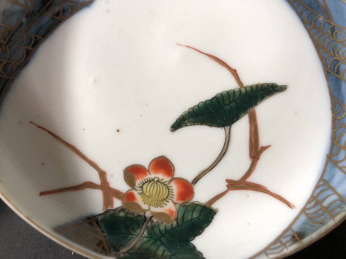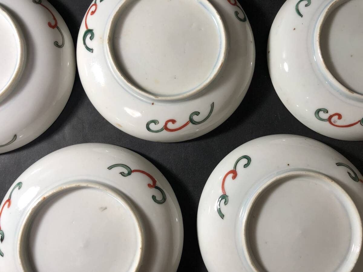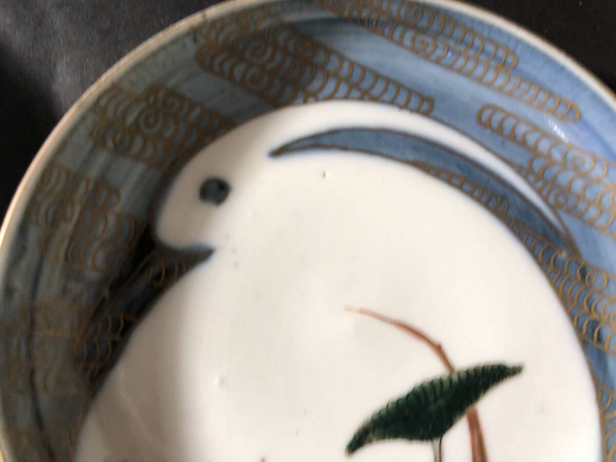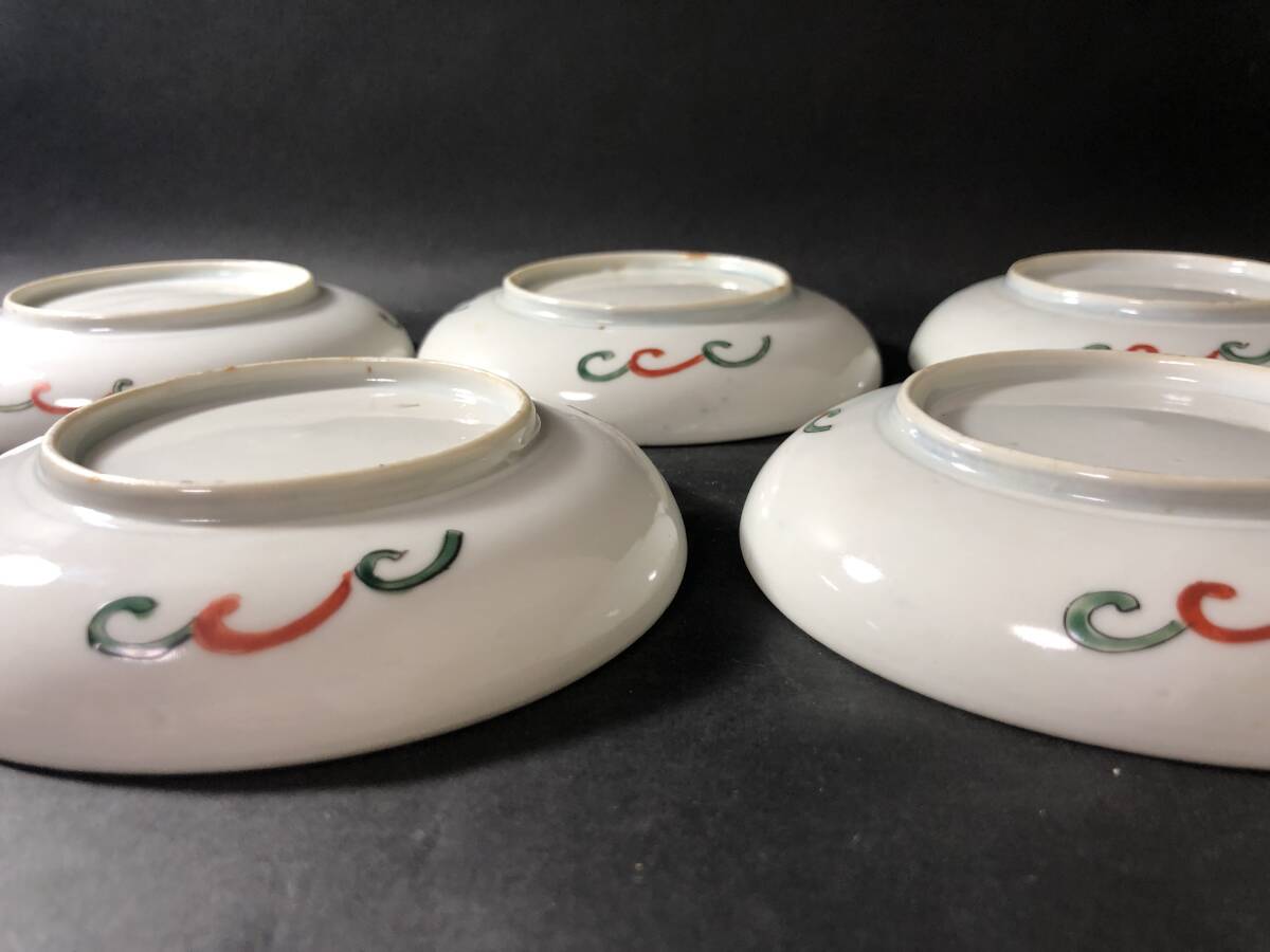 古伊万里 染錦 小皿 豆皿 モダン!白鷺に花文様 五枚 古伊万里 九谷焼 骨董雑貨 和食器 テーブルコーディネート