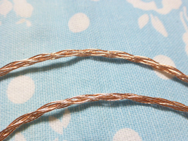 ・編み込みのみ、スリーブレス構成:この線材は被覆透明度が高いので、「銅」が直接見えるととても綺麗です。