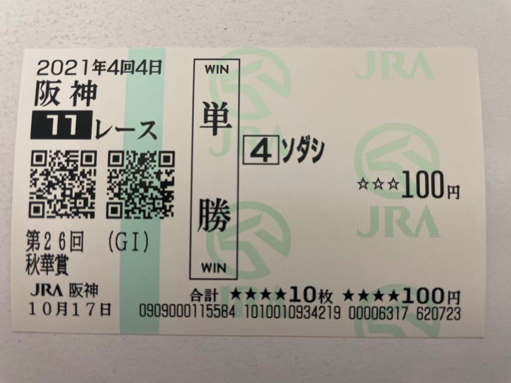ソダシ 秋華賞の現地ハズレ単勝馬券です