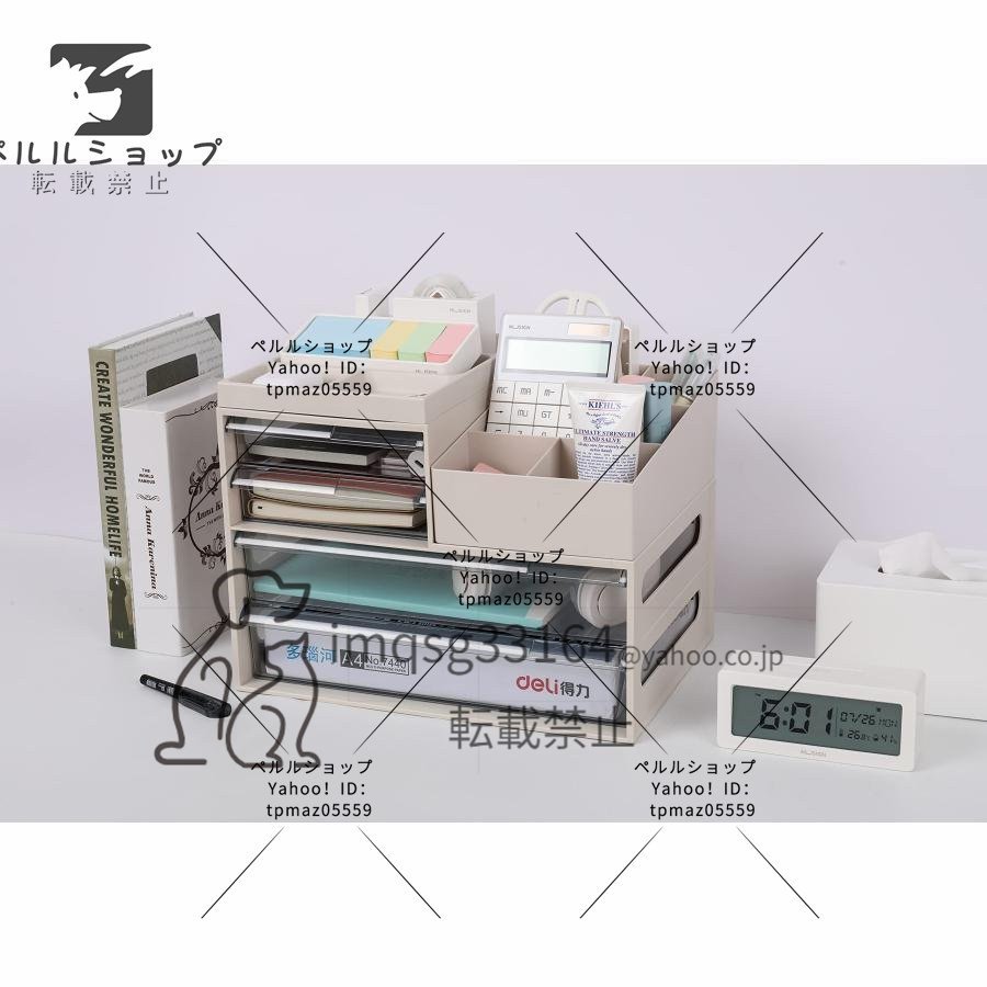 デスクオーガナイザー 収納ボックス 多機能 卓上収納ラック ペン立て 4層引き出し 小物入れ 雑貨収納 A4書類対応 仕切り 文房具 事務用品 化粧品 整理整頓