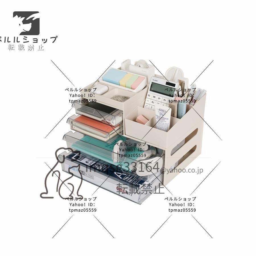 デスクオーガナイザー 収納ボックス 多機能 卓上収納ラック ペン立て 4層引き出し 小物入れ 雑貨収納 A4書類対応 仕切り 文房具 事務用品