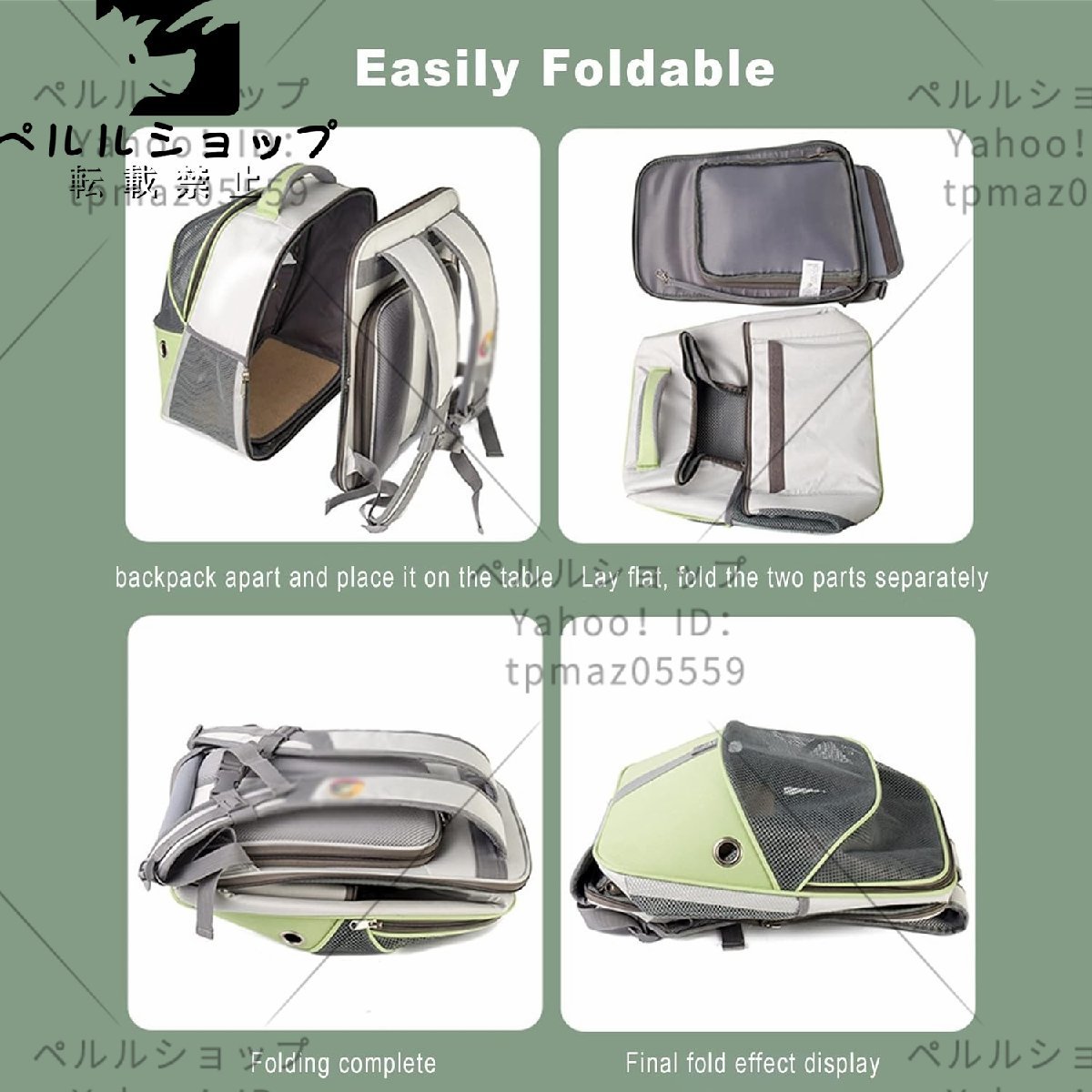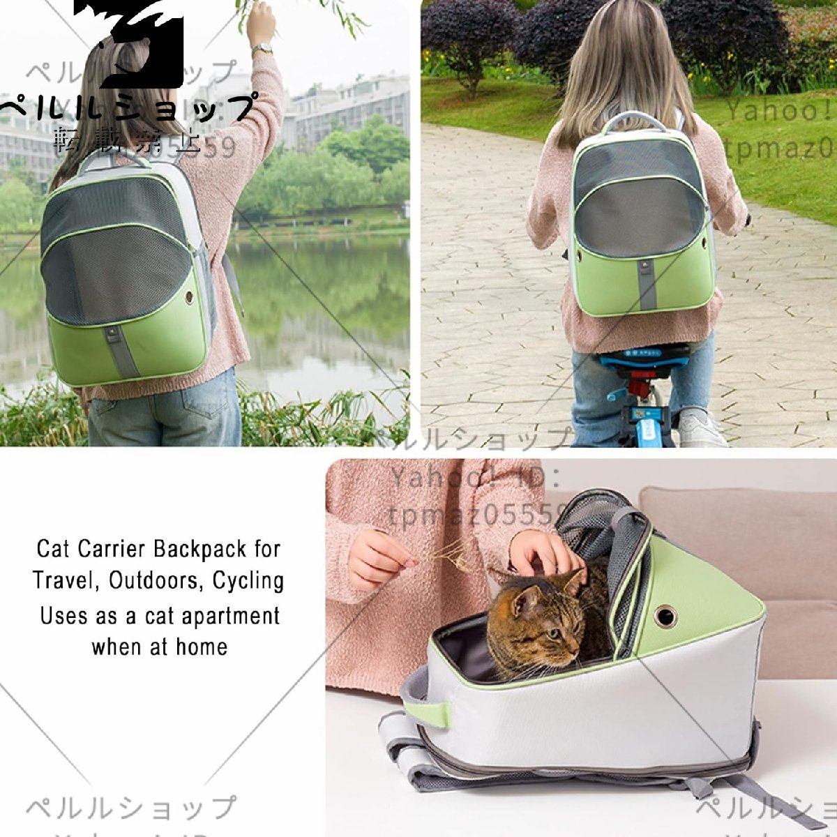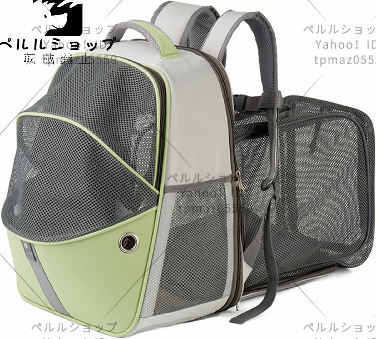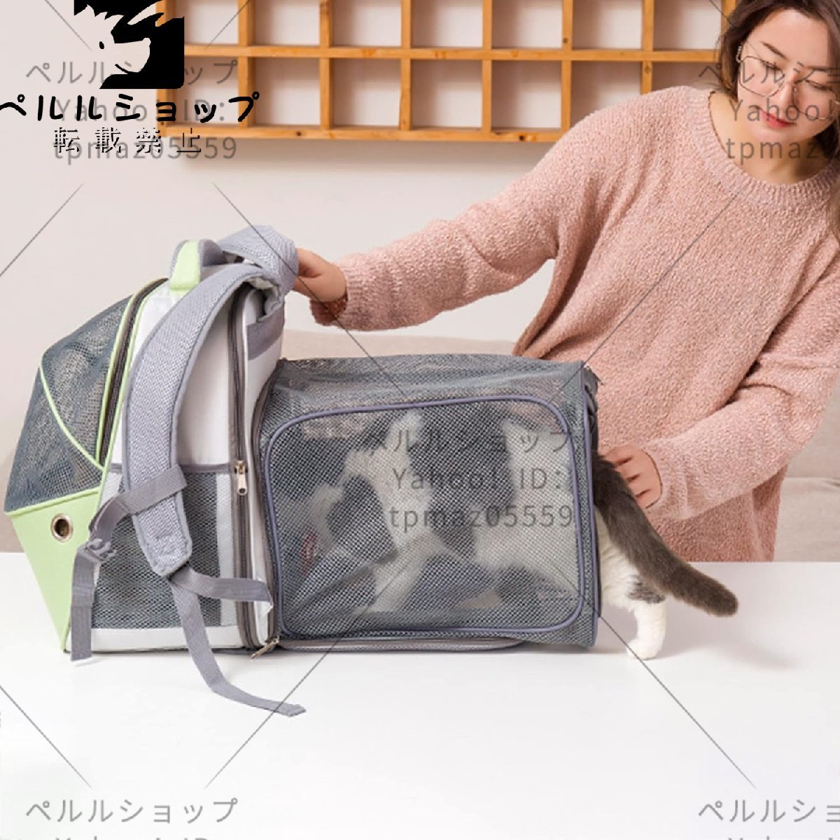 ペットキャリーバッグ 拡張可能猫用キャリーバッグ ポータブル折りたたみ式猫 キャリーきゃりーバッグ メッシュウィンドウと安全ストラップ付き、旅行/通院/車載/キャンピング/災害避難用